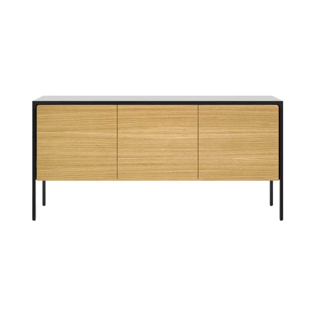The Tactile Sideboard needs but a gentle touch to open the doors or drawers via push-latches. From Spanish maker Punt and noted British designer Terence Woodgate, the cabinetry has a seamless effect with no handles to clutter the view. A choice of wood veneers appears to curve around the recessed front in a contrasting glossy black or white finish. In a range of sizes, the Tactile Sideboard was recognized by Wallpaper magazine as a best in class design.