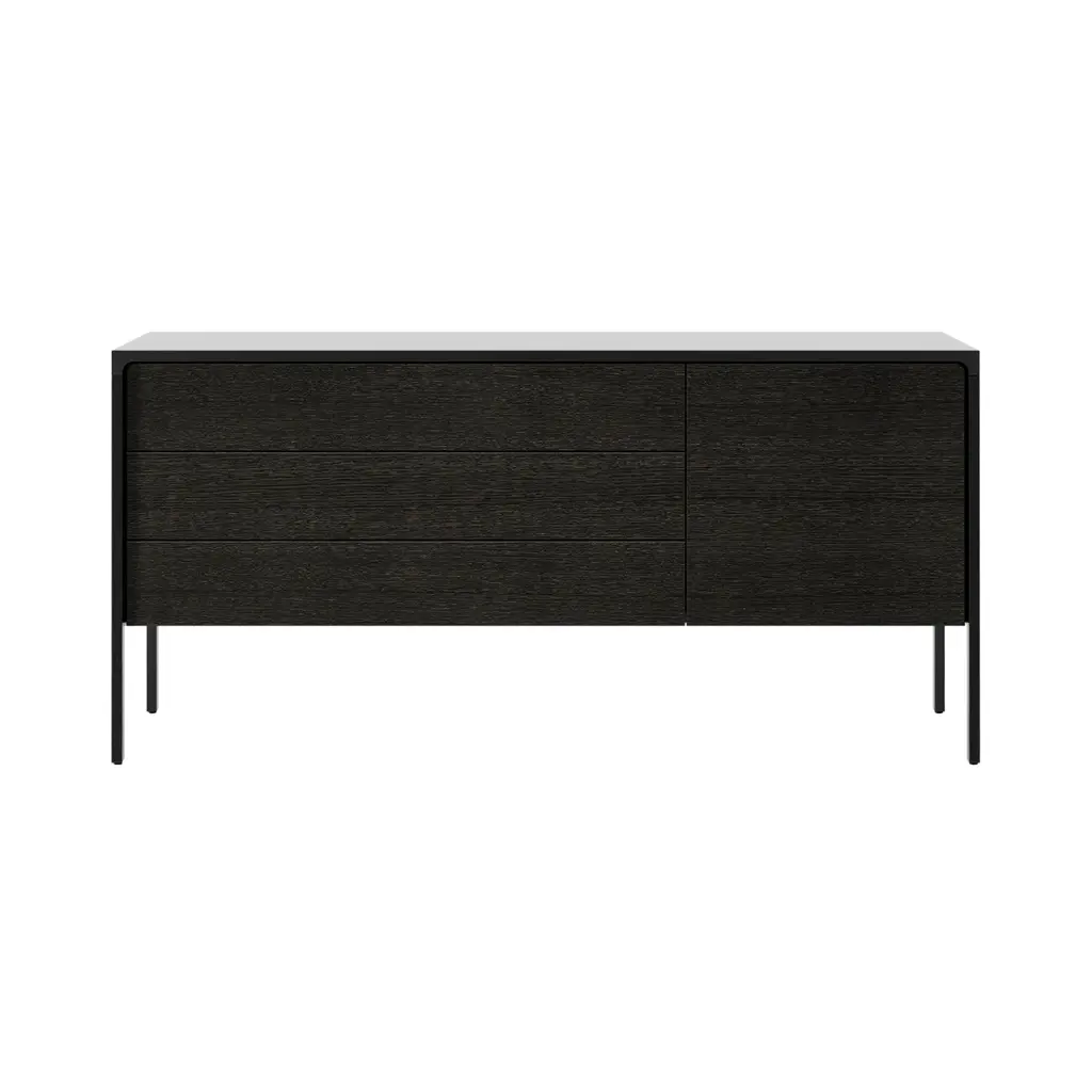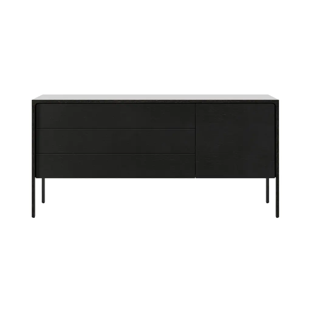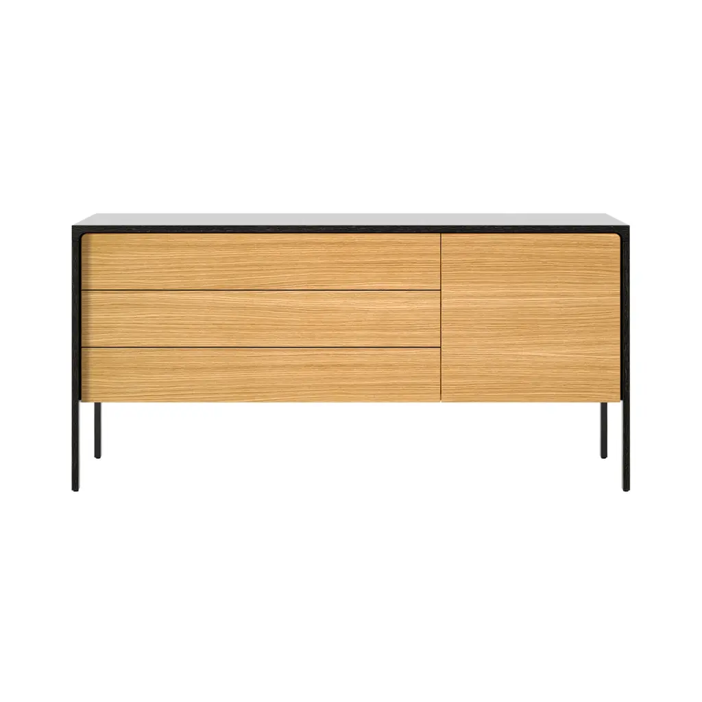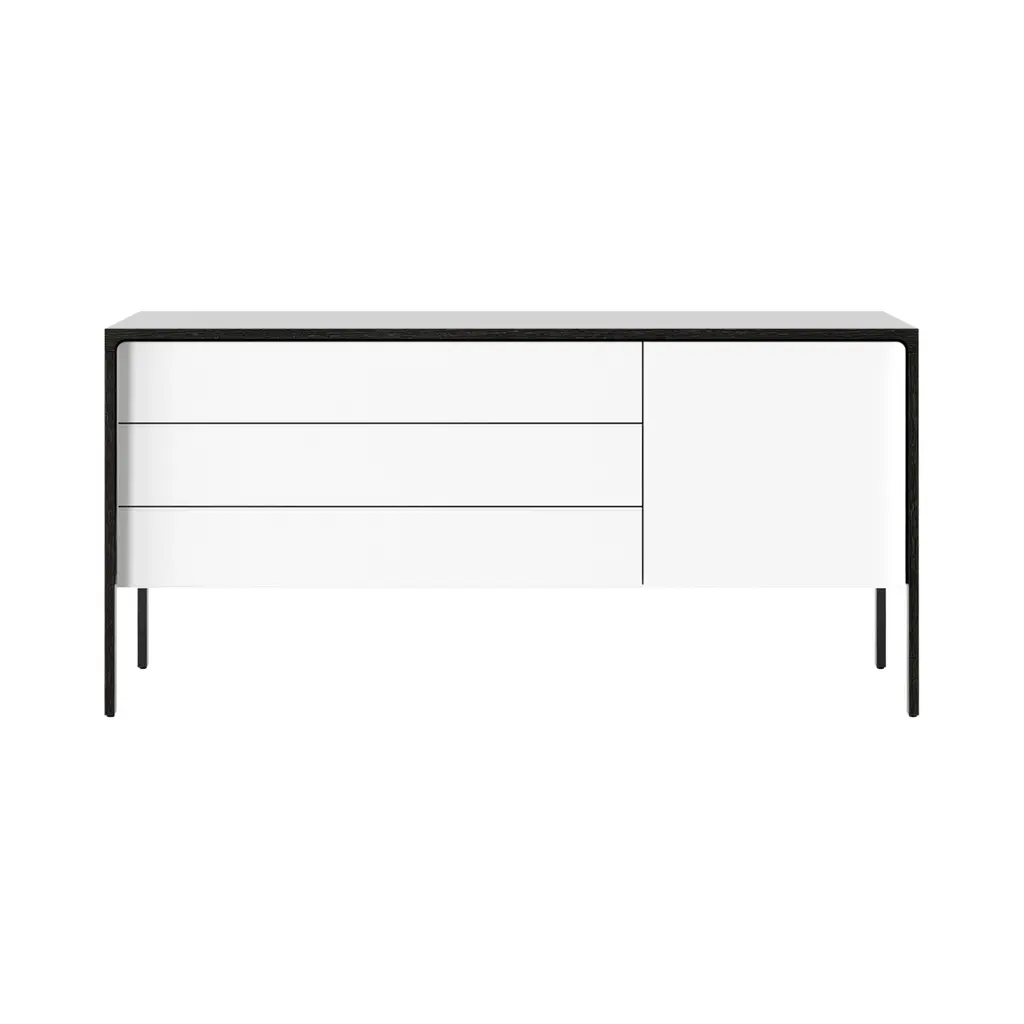 The Tactile Sideboard needs but a gentle touch to open the doors or drawers via push-latches. From Spanish maker Punt and noted British designer Terence Woodgate, the cabinetry has a seamless effect with no handles to clutter the view. A choice of wood veneers appears to curve around the recessed front in a contrasting glossy black or white finish. In a range of sizes, the Tactile Sideboard was recognized by Wallpaper magazine as a best in class design.
