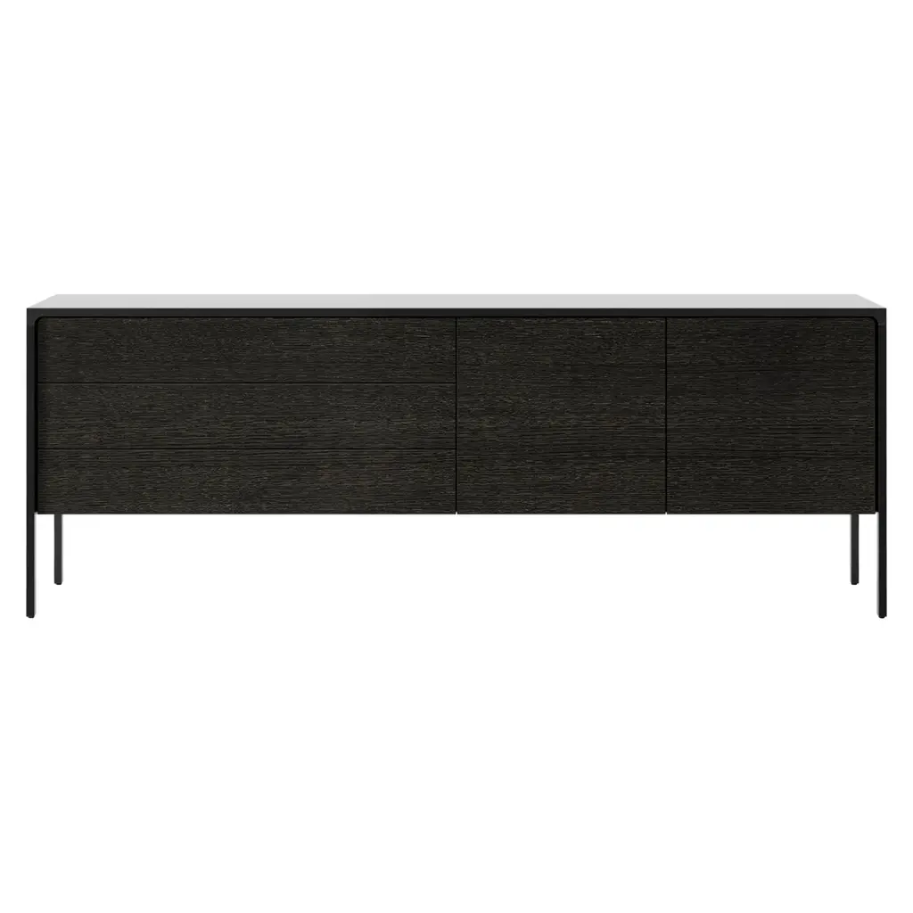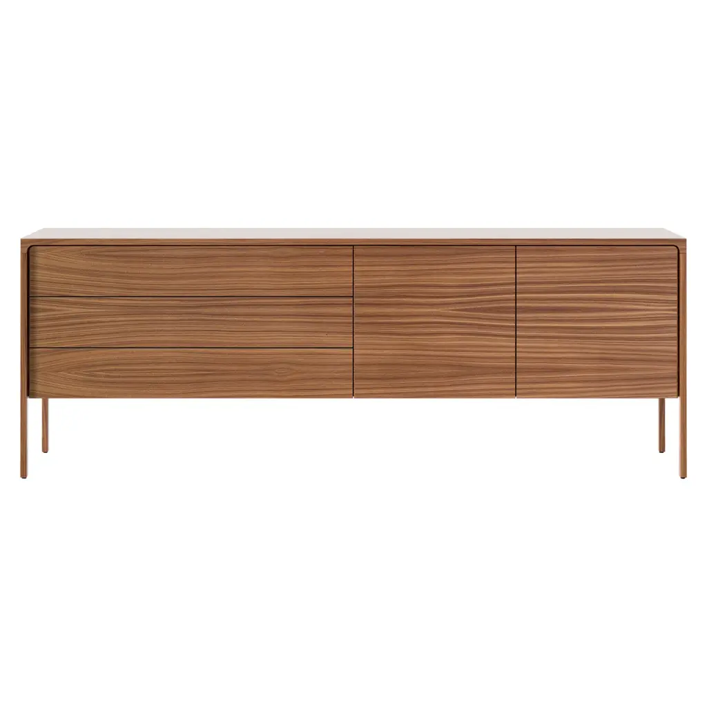 The Tactile Sideboard needs but a gentle touch to open the doors or drawers via push-latches. From Spanish maker Punt and noted British designer Terence Woodgate, the cabinetry has a seamless effect with no handles to clutter the view. A choice of wood veneers appears to curve around the recessed front in a contrasting glossy black or white finish. In a range of sizes, the Tactile Sideboard was recognized by Wallpaper magazine as a best in class design.