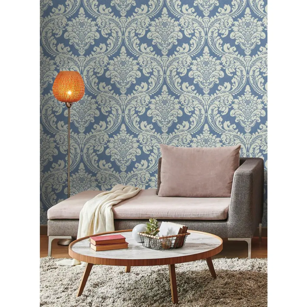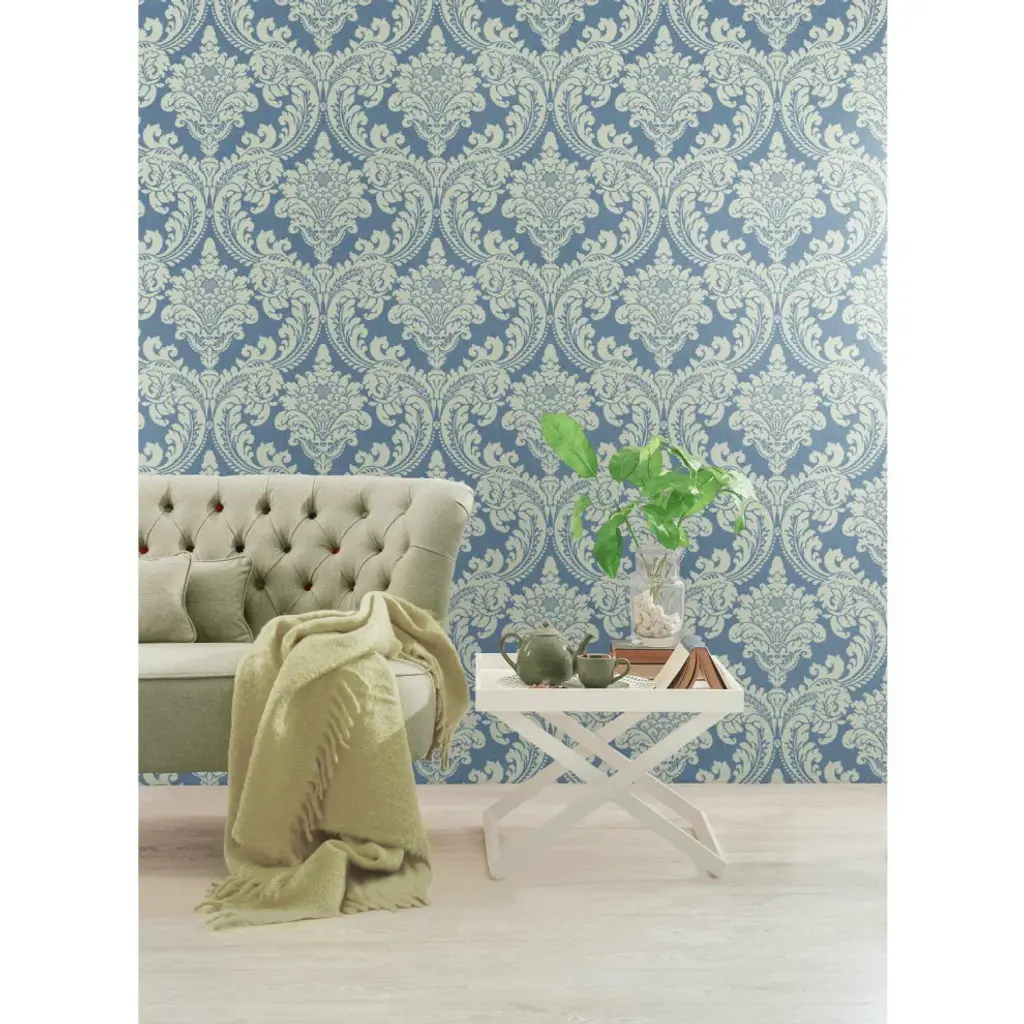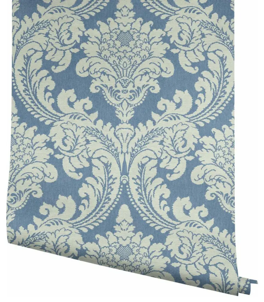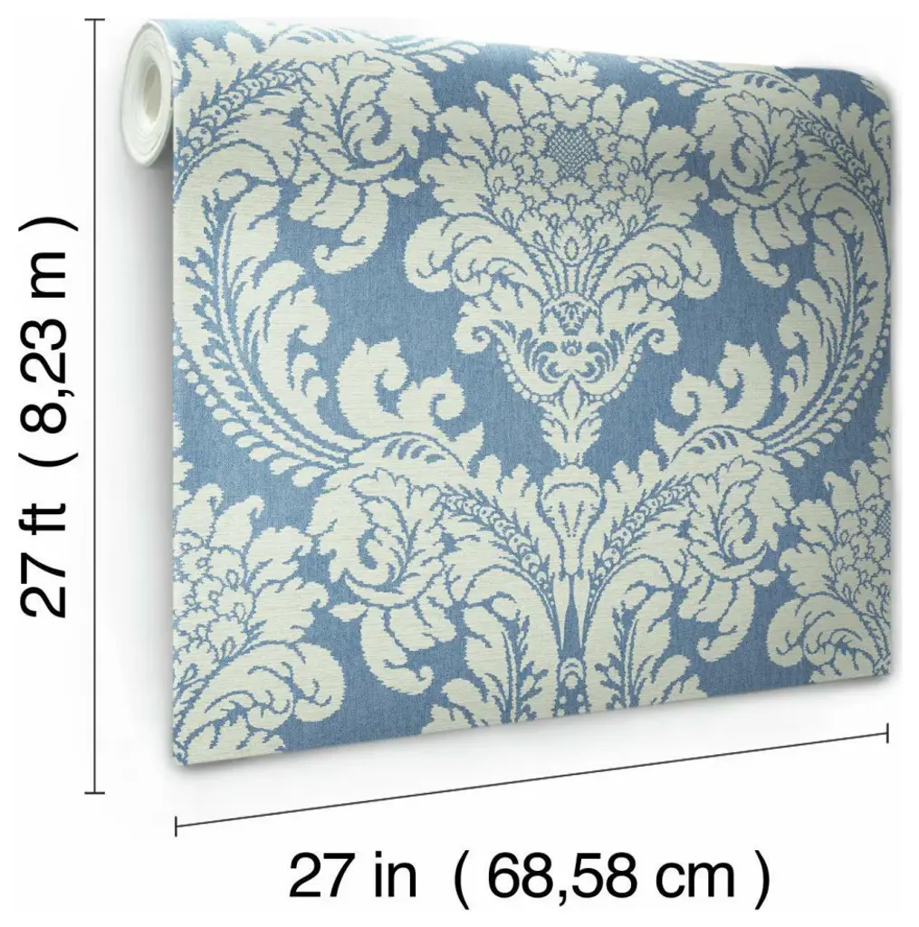 Timeless motifs combine with sophisticated color to create the playful, casual pattern mix of heritage and modern found in Grandmillennial. Manufactured on Sure Strip�, a unique high performance substrate, this ultra-easy removable wallpaper is guaranteed easy to install and easy to remove; simply use water to activate. Medallions and acanthus leaves create the classic upholstery weave of pattern Tapestry Damask. Includes 1 roll - 27 in x 27 ft = 60.75 sq ft with a straight match and 25.25 in repeat.