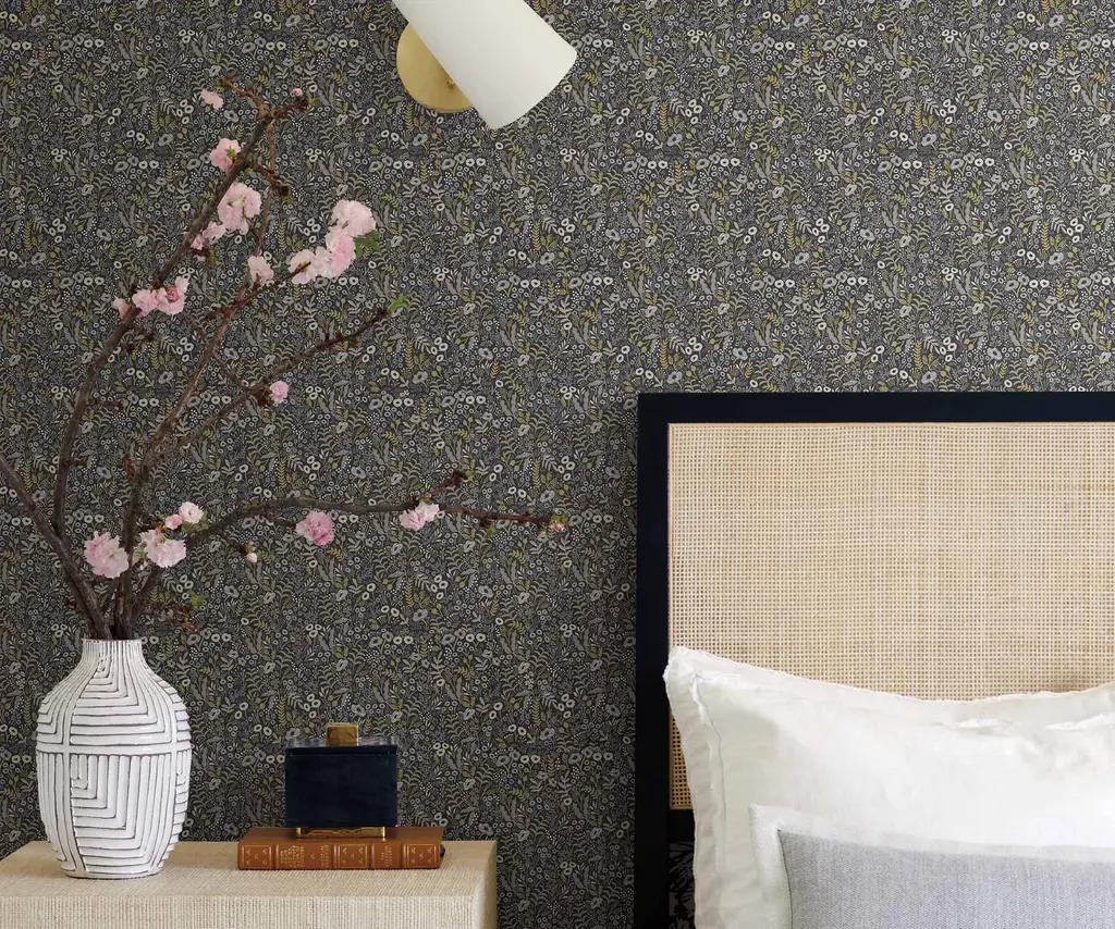 Surround yourself by a blooming meadow with Tapestry, a delicate and detailed pattern of flowers, buds, and leaves. This wallpaper is screen printed and comes in 27 inch rolls with a 25.25 inch repeat. Due to the printing process, there may be color variations in different print runs. We suggest purchasing all wallpaper needed for a project at one time for the best color consistency. Unopened rolls can be returned.