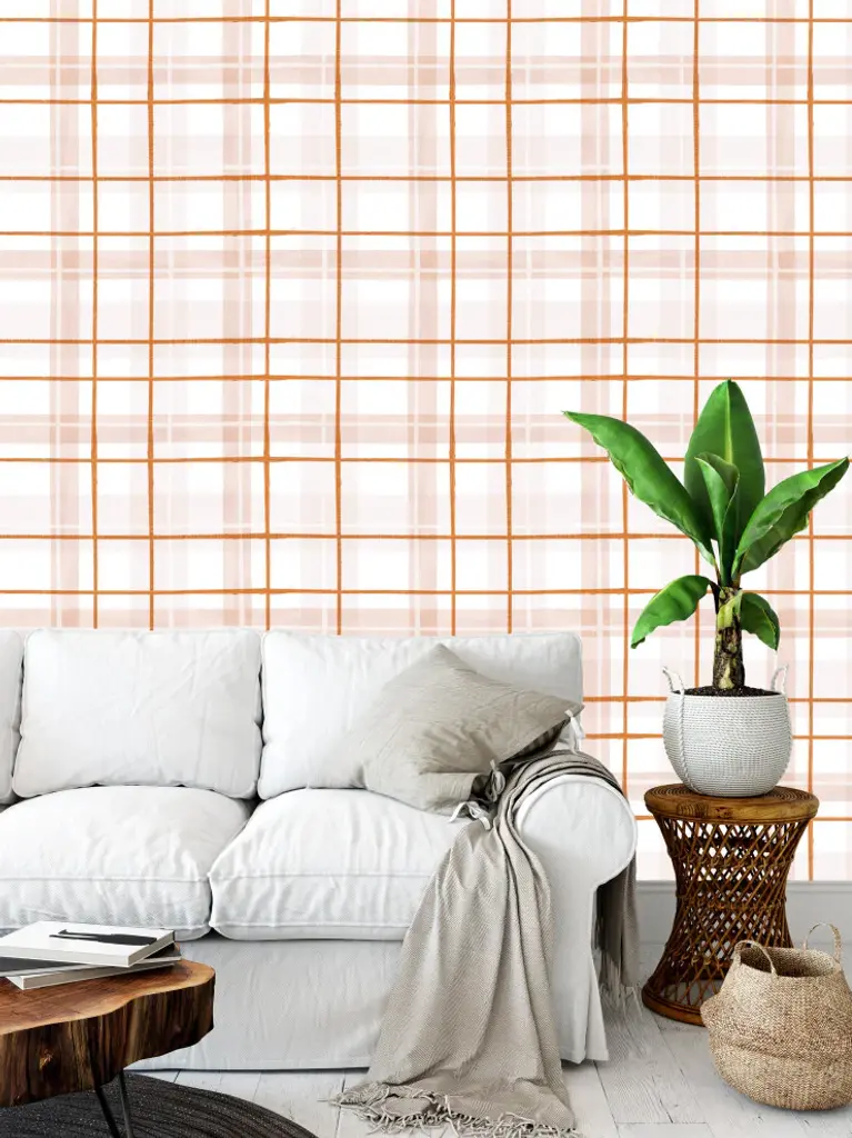 Tartan Blush And Rust Wallpaper, 24"x72"