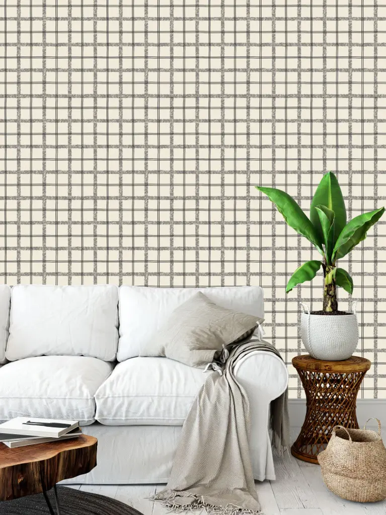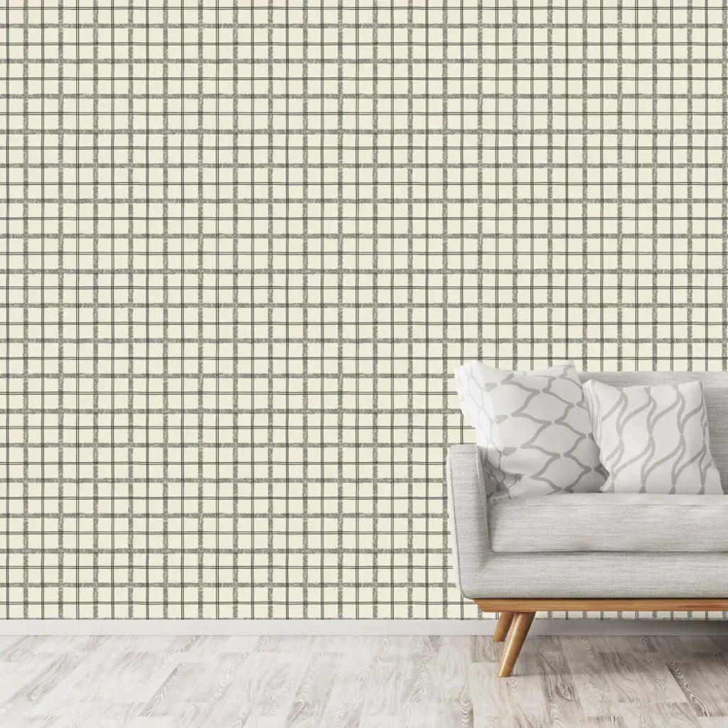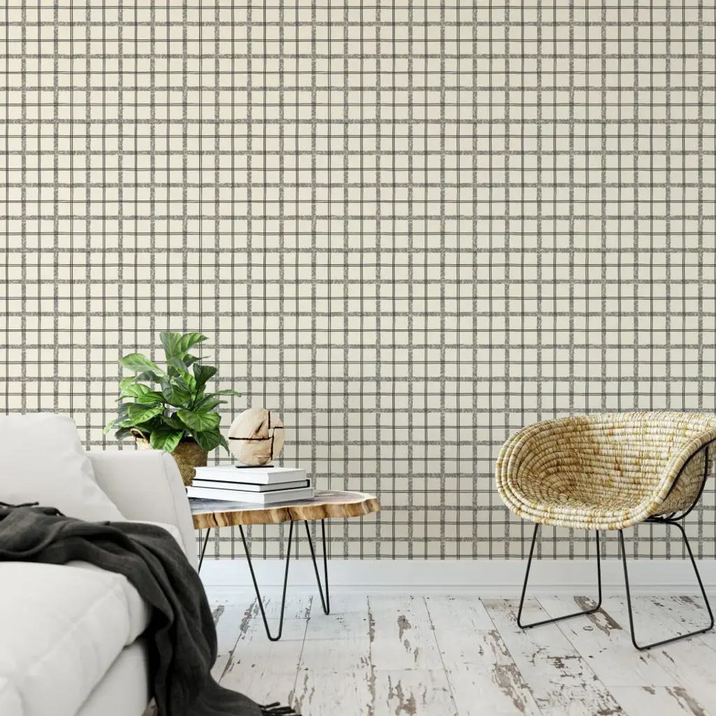 Tartan, Charcoal Wallpaper By Erin Kendal, 24"x144"