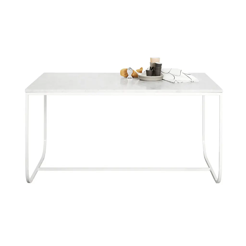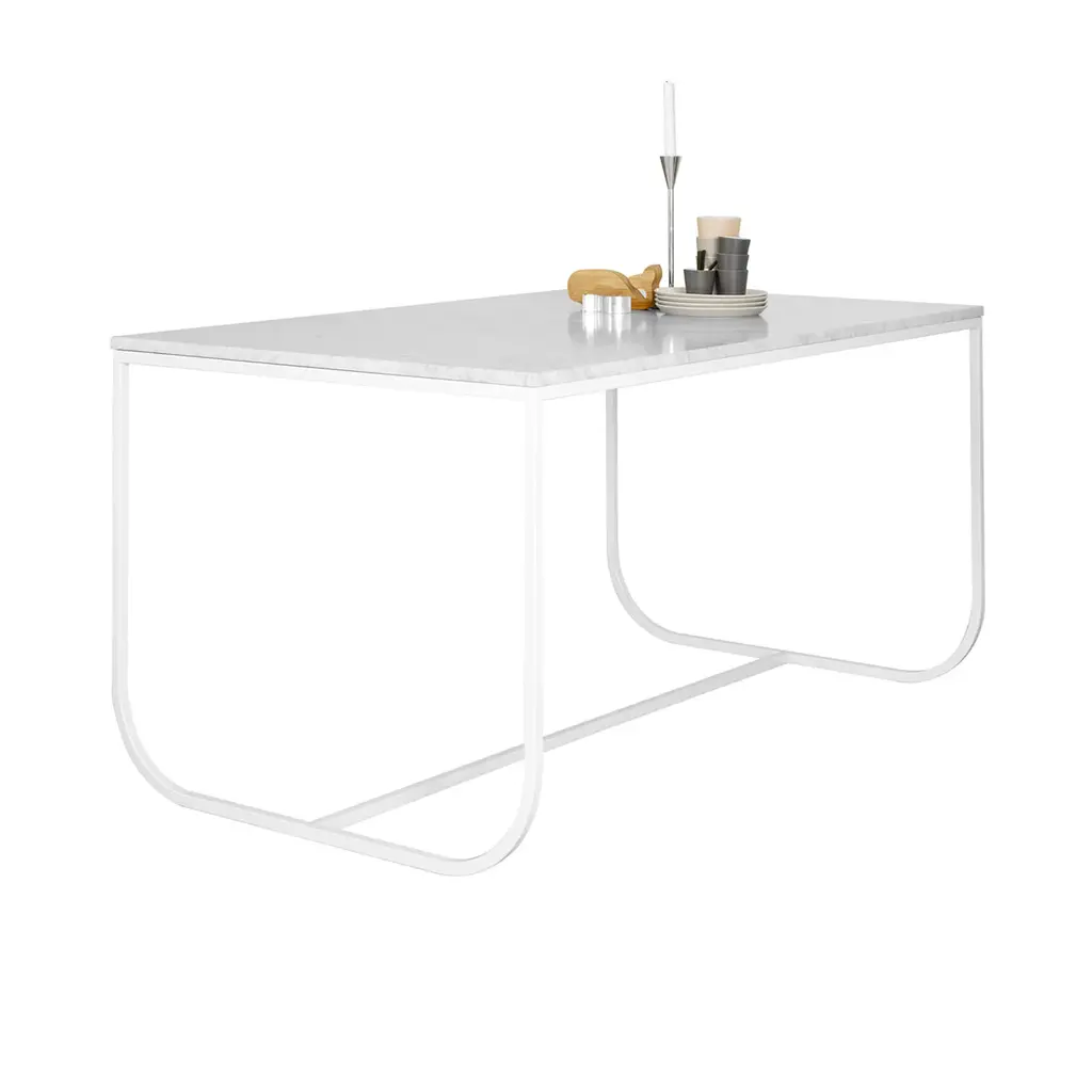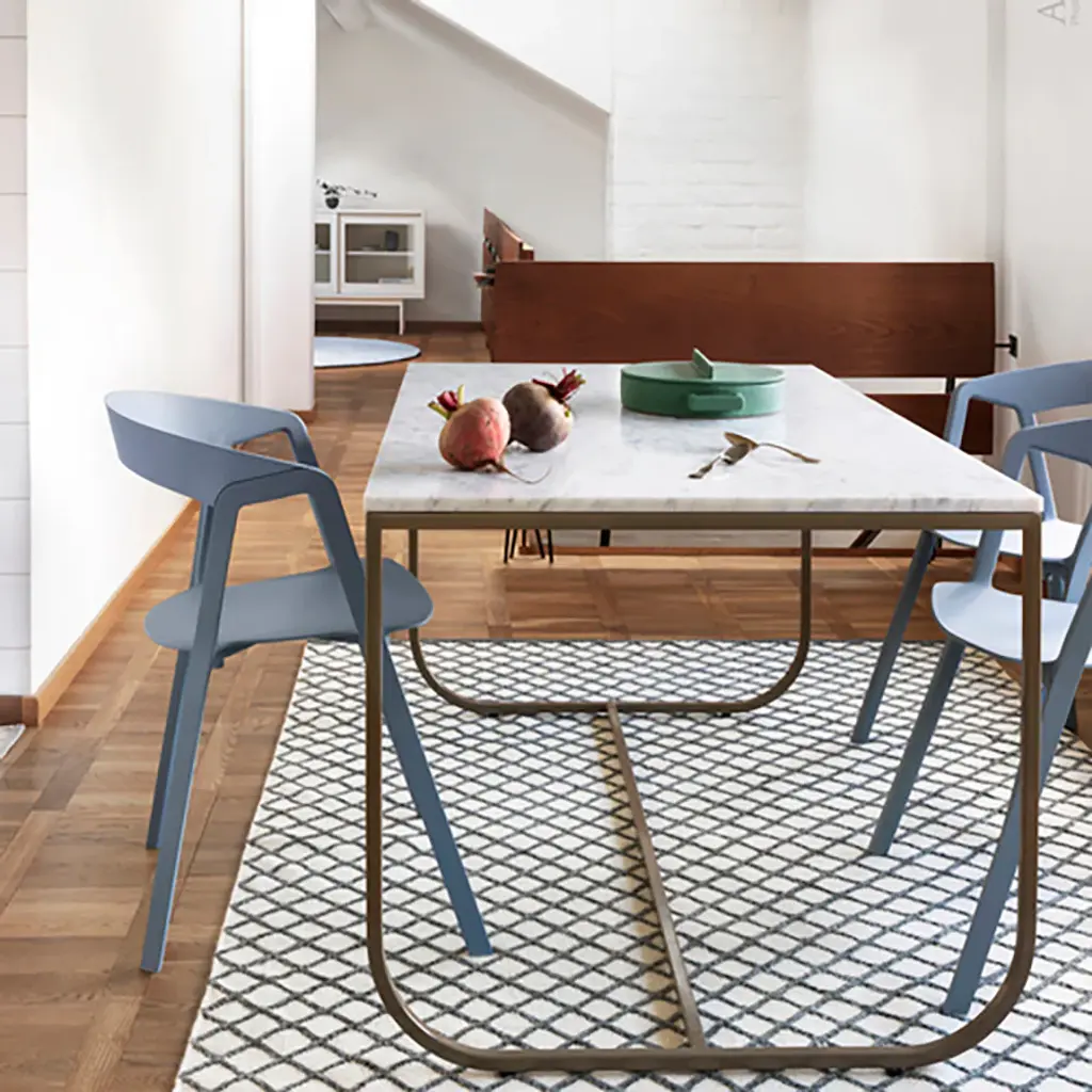 In the Tati series suggested by the French film legend, Asplund offers a compactly scaled dining table with the luxurious option of a solid stone top. Choose from several varieties of Belgian limestone or creamy marble to complement the graceful lacquered metal frame. Designer duo Broberg & Ridderstråle nabbed a coveted Wallpaper design award for their expressive creation that will bring a sense of élan to any interior.