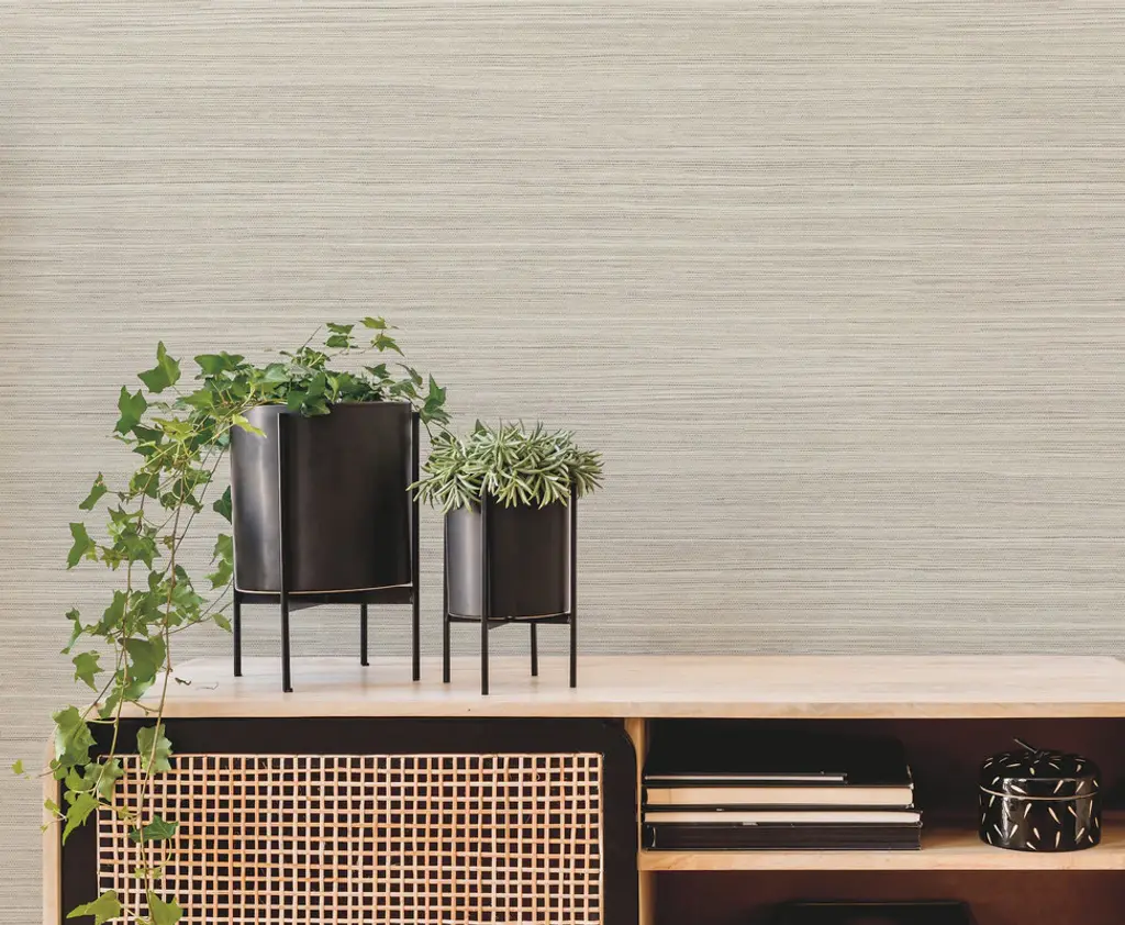 A blend of brown hues accented by black replicate the woven detailing of grasscloth, slightly embellished with raised inks to add an air of authenticity to Fountain Grass. This Fountain Grass Wallpaper measures approximately 27 inches wide by 27 feet long, measuring approximately 60.8 square feet per roll. Artistic experimentation with the interplay of form, color and texture has led to an avant-garde reimagining of familiar design motifs. Prepasted sure strip material; 24-in repeat, straight match; Washable and strippable; 27-in by 27-ft long roll; Covers about 60.8 square feet