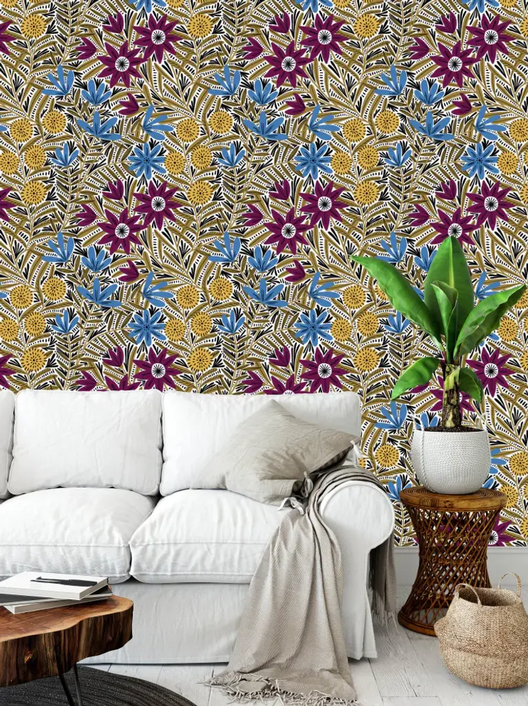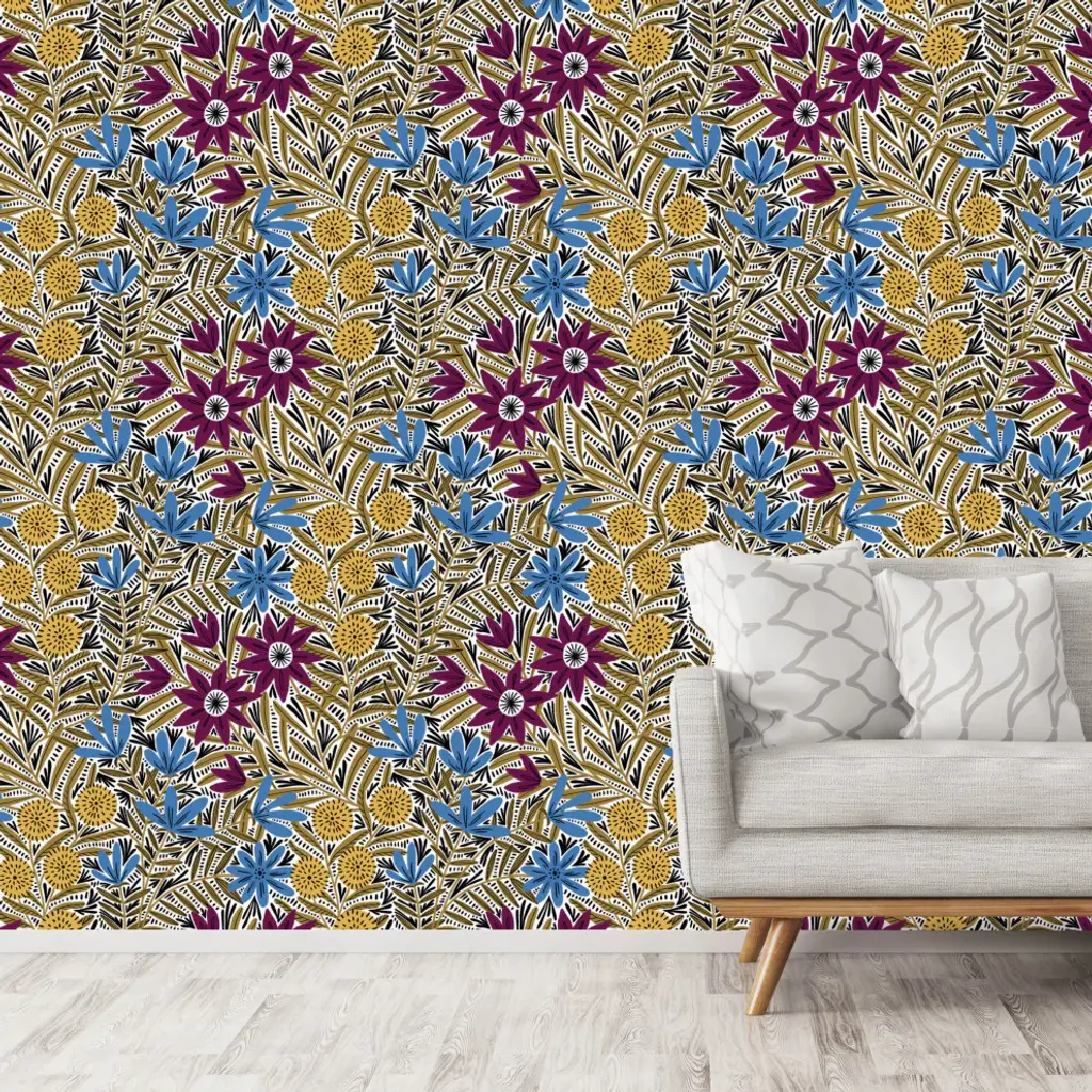 Each roll of wallpaper is custom printed to order and has a fixed width that covers 24 inches of wall space. Peel & Stick Fabric Wallpaper - Removable and Repositionable! Limitless Walls Fabric Peel and Stick wallpaper is a woven polyester fabric with an adhesive backing. Limitless Walls fabric is not like everyone else"™s, ours is the thickest most durable and easiest to install. You won"™t be able to find this anywhere else since we make it ourselves!• 100% opaque white polyester woven with adhesive backing• Eco-friendly and formaldehyde-, phthalate-, and PVC-free• To install, simply peel and stick• Easily removable and repositionable IMPORTANT NOTE Our wallpapers are not recommended for application over paints advertised as being stain-resistant or washable. These paints are crafted to prevent things from sticking -- including wallpaper. If in doubt, you can use Zinsser Gardz which is a clear primer that you can apply right over your current paint. If your wall has been recently painted, allow at least 2+ weeks for the paint to cure before applying wallpaper. Applying wallpaper over uncured paint can lead to bubbling. Our wallpaper will not stick to cement or textured walls.We highly recommend ordering a test swatch before committing to full rolls. While we have done our best to accurately represent the color and scale of this design, computer monitors aren''t the best way to determine how a printed color will look in person. It''s possible that the finished product may be slightly different than it appears in the preview. It is also important to test the adhesive on your unique surface.CARE INSTRUCTIONS:Gently wipe down with a damp cloth, soft cleaners such as dish soap can be used. The use of heavy cleaners or heavy rubbing can cause color to lift.Original Design by Amy MacCready.