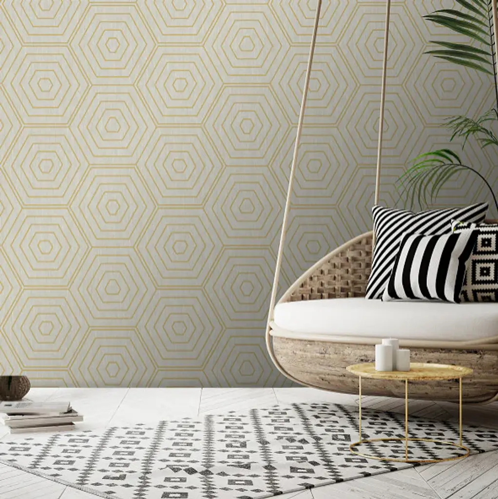 The SK Filson Aztec Hexagons Wallpaper is a great way to introduce your walls to pattern this season. This stunning wallpaper is part of the Famo Wallpaper Collection and is sure to make a welcome addition to any room. The wallpaper features a modern foil metallic hexagonal design for a stylish look and is brought to life in a rich colour scheme.Easily strip-ableMatch Type is OfsetDesign Repeat is 20.86 Inches