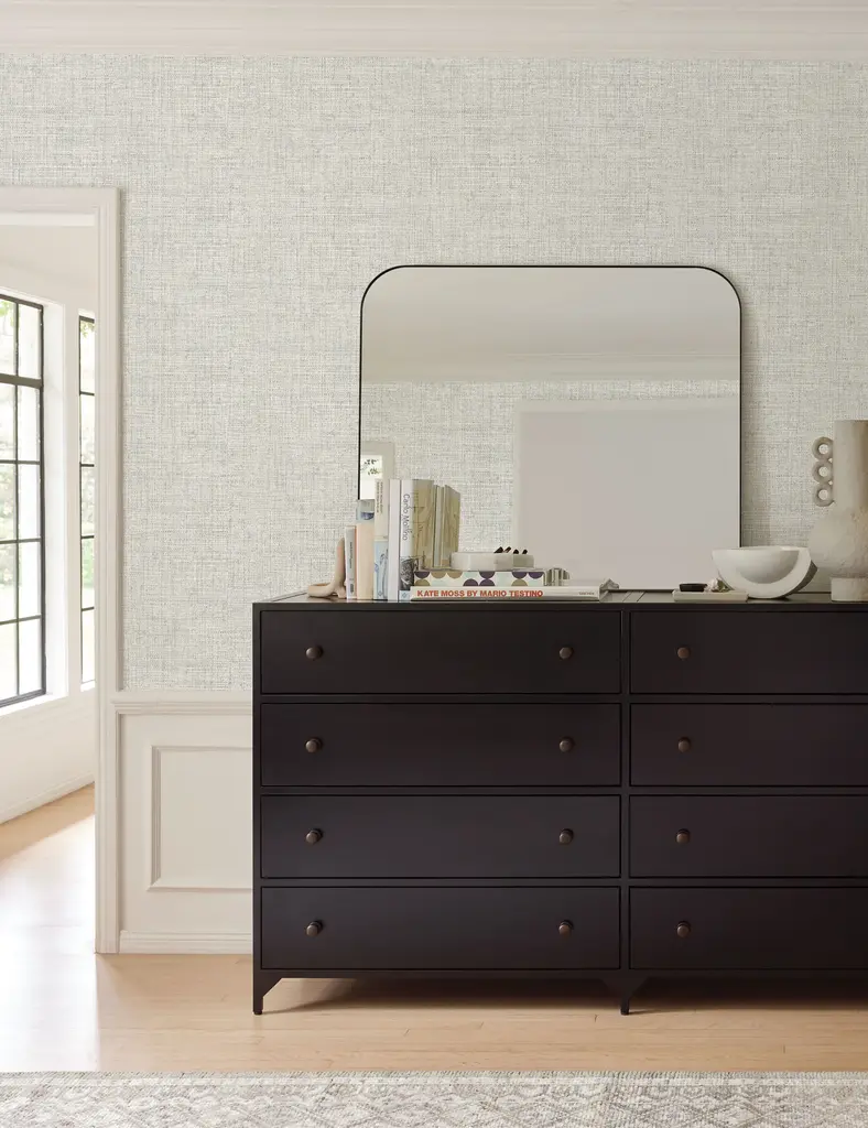 We love the depth this pattern-forward motif can bring to a room. The intricate, printed motif creates a textural visual effect with an easy-care appeal. You can style Tessier in your powder room, dining area, or entryway for a versatile paper wall covering with a woven fiber look.