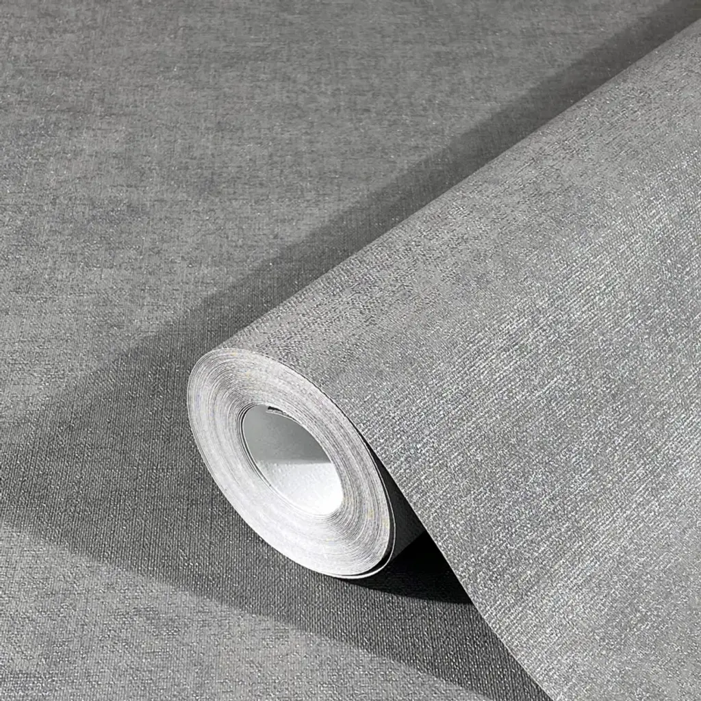 Textures Collection Grey Textured Plain Luster Finish Wallpaper Roll