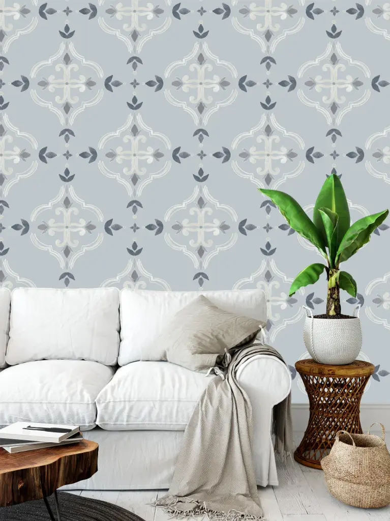 Tile Style Gray Wallpaper By Monor Designs, 24"x72"