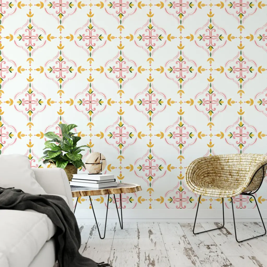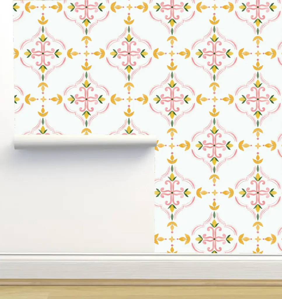 Each roll of wallpaper is custom printed to order and has a fixed width that covers 24 inches of wall space. Peel & Stick Fabric Wallpaper - Removable and Repositionable! Limitless Walls Fabric Peel and Stick wallpaper is a woven polyester fabric with an adhesive backing. Limitless Walls fabric is not like everyone else"™s, ours is the thickest most durable and easiest to install. You won"™t be able to find this anywhere else since we make it ourselves!• 100% opaque white polyester woven with adhesive backing• Eco-friendly and formaldehyde-, phthalate-, and PVC-free• To install, simply peel and stick• Easily removable and repositionable IMPORTANT NOTE Our wallpapers are not recommended for application over paints advertised as being stain-resistant or washable. These paints are crafted to prevent things from sticking -- including wallpaper. If in doubt, you can use Zinsser Gardz which is a clear primer that you can apply right over your current paint. If your wall has been recently painted, allow at least 2+ weeks for the paint to cure before applying wallpaper. Applying wallpaper over uncured paint can lead to bubbling. Our wallpaper will not stick to cement or textured walls.We highly recommend ordering a test swatch before committing to full rolls. While we have done our best to accurately represent the color and scale of this design, computer monitors aren''t the best way to determine how a printed color will look in person. It''s possible that the finished product may be slightly different than it appears in the preview. It is also important to test the adhesive on your unique surface.CARE INSTRUCTIONS:Gently wipe down with a damp cloth, soft cleaners such as dish soap can be used. The use of heavy cleaners or heavy rubbing can cause color to lift.Original Design by Monor Designs.