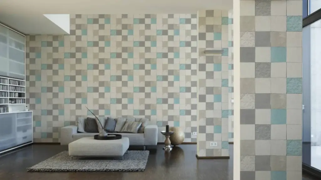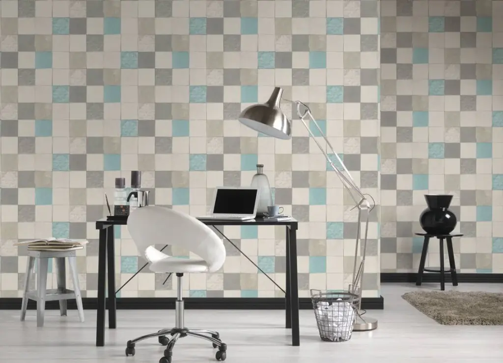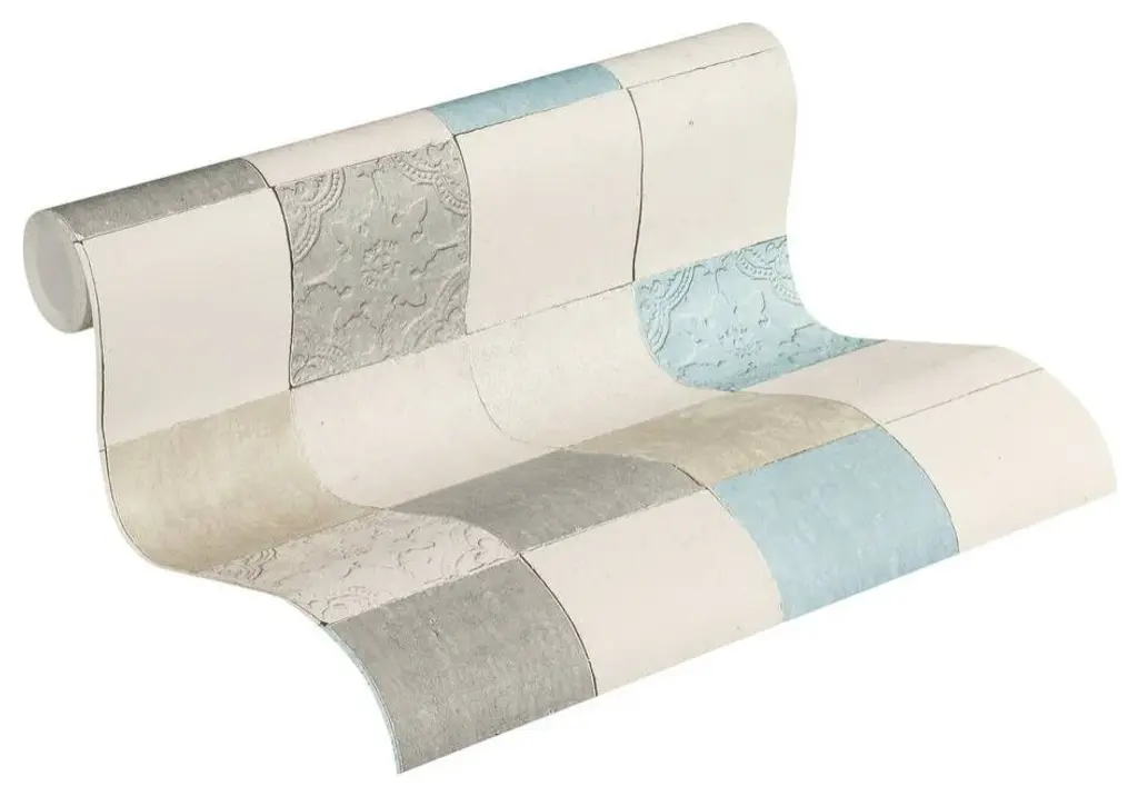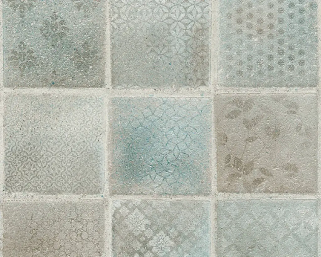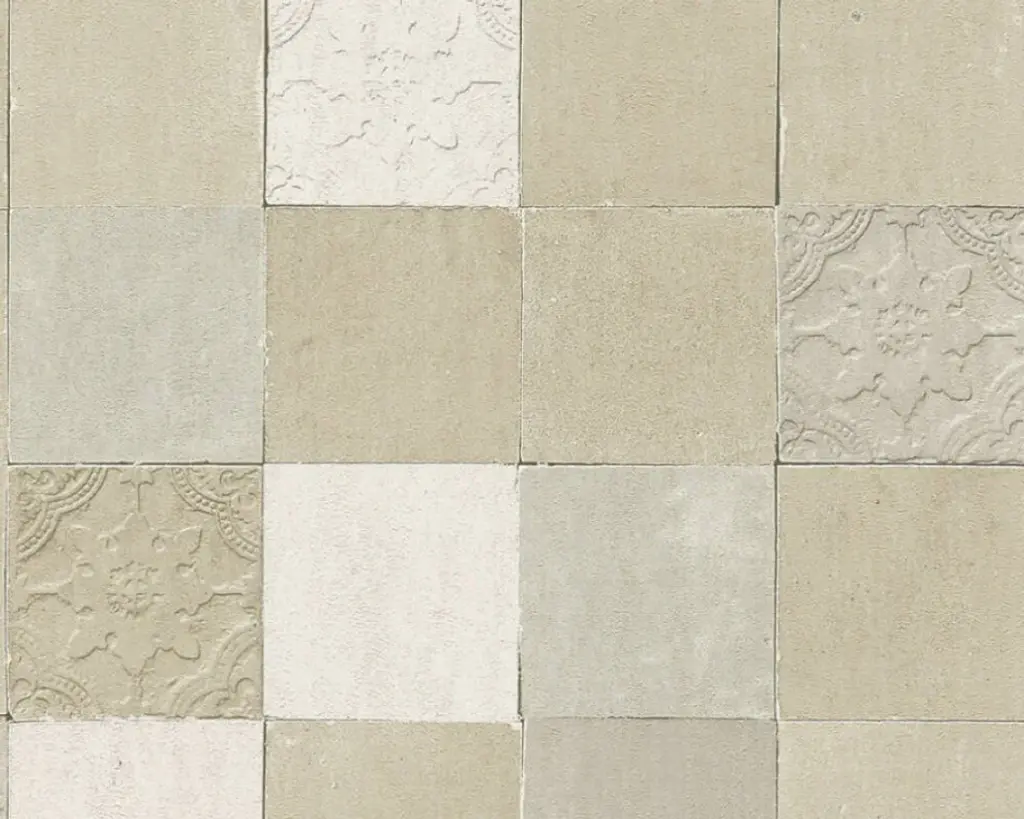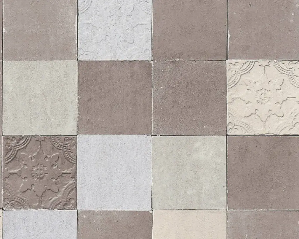 Tile Textured Wallpaper Featuring Floral And Plain Pattern, 374061