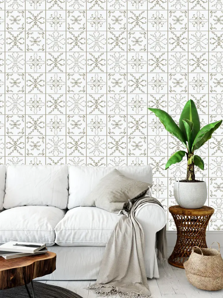 Tile White Wallpaper By Monor Designs, 24"x144"