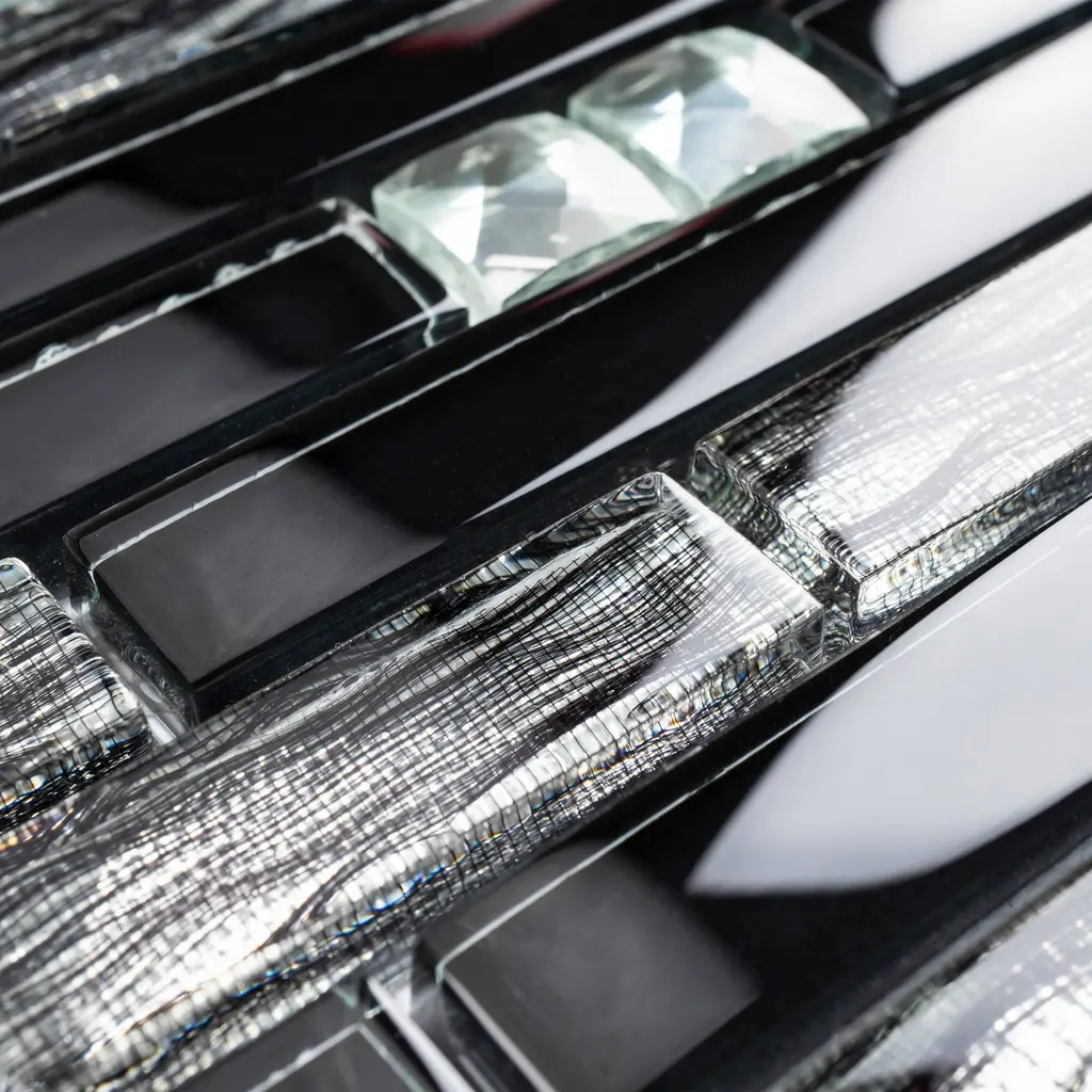 Tile Generation Crystal Diamond Wallpaper Random Sized Glass Mosaic Tile in Silver/Black Wall Tile features glossy patterned versailles design. High-quality glass transforms your home into a magnificent space. The random versailles creates beautiful layouts and designs when mixed and matched with other colors. It also features Low-maintenance and easy clean will make your life so much easier. This premium tile is an ideal and elegant look to your living room, kitchen and bathroom. Details The images have already display the most accurate color. However, color variation may still accurate due to the difference in computer monitor screen. All order will be shipped within 1-2 business days except large quantity order which is over 300 lbs will ship via freight carrier which might expect longer shipping time frame. Each item within an order will be selected from the same lot number which has no color or size variation, but multiple orders may cause receiving multiple lots of products. Please ensure that all tiles for a project is ordered within one order. If any reorder please email us by providing original order number to ensure receiving the same lot of product.