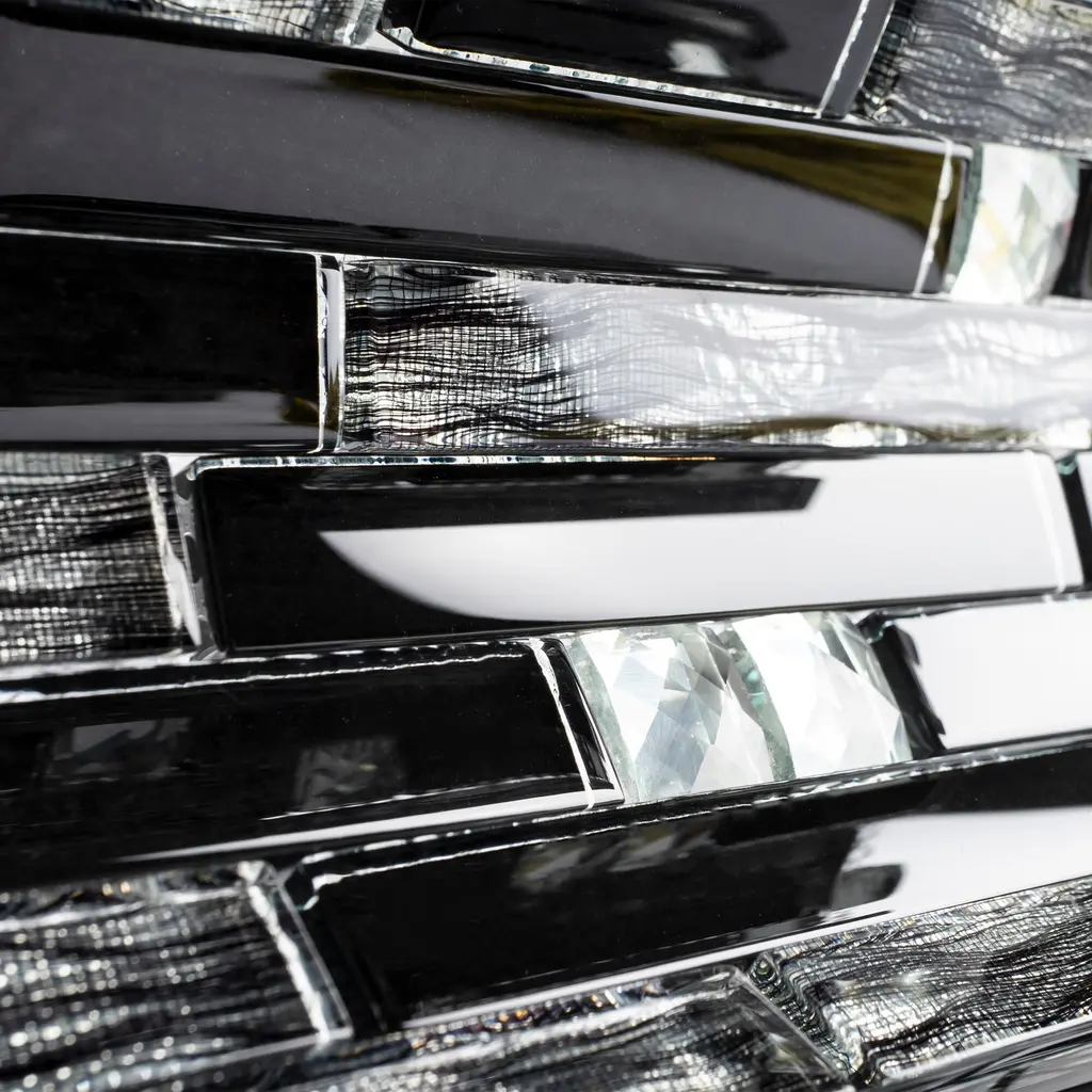 Tilegen. Crystal Diamond Wallpaper Random Sized Glass Mosaic Tile In Silver/black Wall Tile (10 Sheets/9.6sqft.) - Case