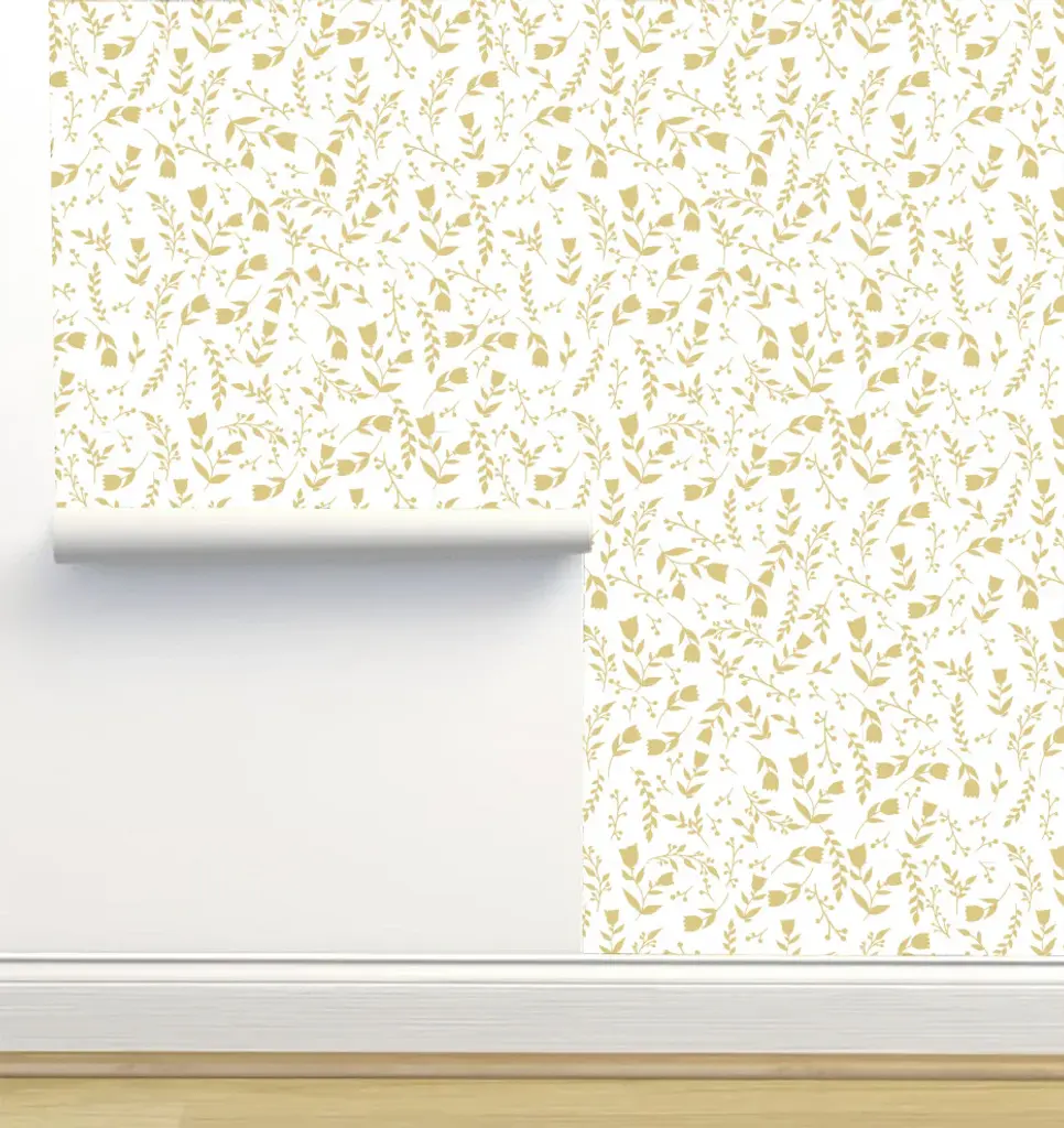 Tiny Flowers Gold Wallpaper By Monor Designs, 24"x72"