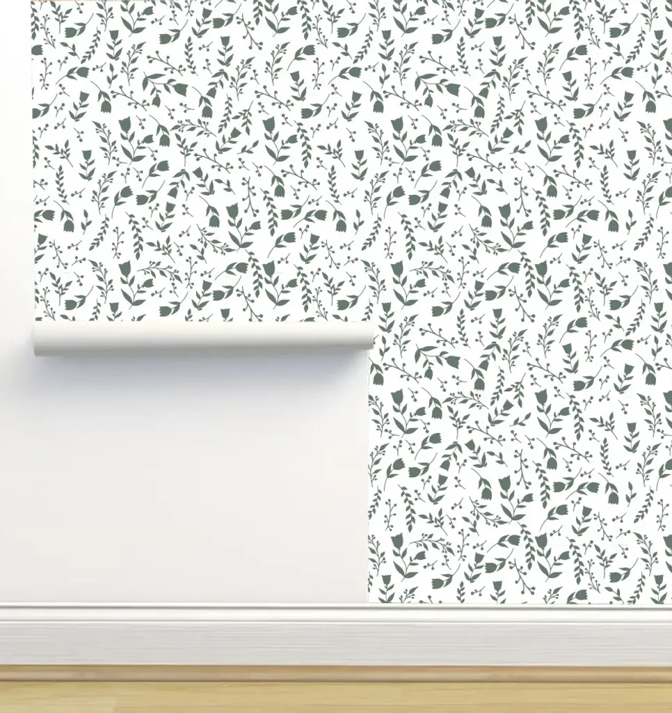 Tiny Flowers Sea Green Wallpaper By Monor Designs, 24"x72"
