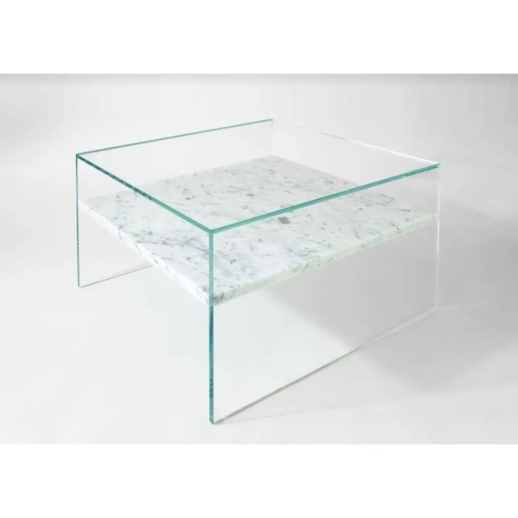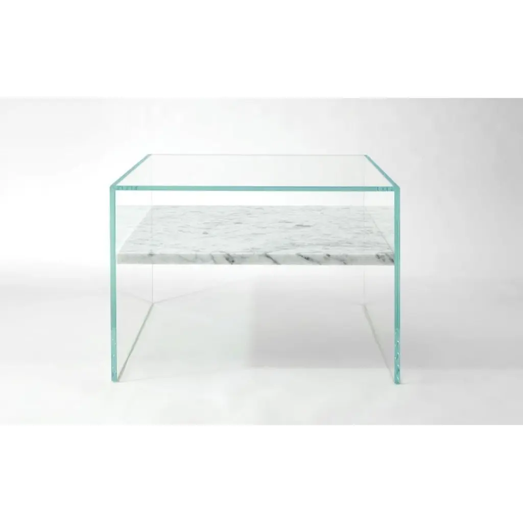 To float within end table by ClasteDimensions: D 55.9 x W 55.9 x H 45.7 cmMaterial: Marble, GlassWeight: 66 kgSince 2017 Quinlan Osborne has cultivated an aesthetic in his work that is rooted in the passion for contemporary design he developed while practicing as an Architect for fi fteen years prior to shifting his attention to the world of collectible design and furniture. Representative of a new form of minimalism his studio produces a refi ned, sensual series of works which provide subtle moments of refl ection, devoid of distraction yet monumental and bold. The sculptural nature of his work explores new ways and means of infusing traditional materials such as marble and glass with notions of fragility and tension that elicit a deeper more emotional connection resulting in pieces that appear impossibly stable yet permanently grounded. Through ingenuity and artistry his work fuses an in-depth knowledge of tradition- al techniques of craftsmanship and artisanry with a desire to push the boundaries of what is possible with modern technology and fabrication processes, blending the familiar with the extraordinary and inviting people to re-examine their expectations of what furniture should be and how it is traditionally used.His work has been recognized with numerous high-profi le international design awards, including the Archiproducts Design Award, the Good Design Award from the Chicago Athenaeum: Museum of Art and Design and the Grands Prix du Design for Quebec. He has also been featured in several signifi cant design and lifestyle publications around the world including Elle Décor, T Magazine, Architectural Digest, Wallpaper, Surface Magazine and many others.