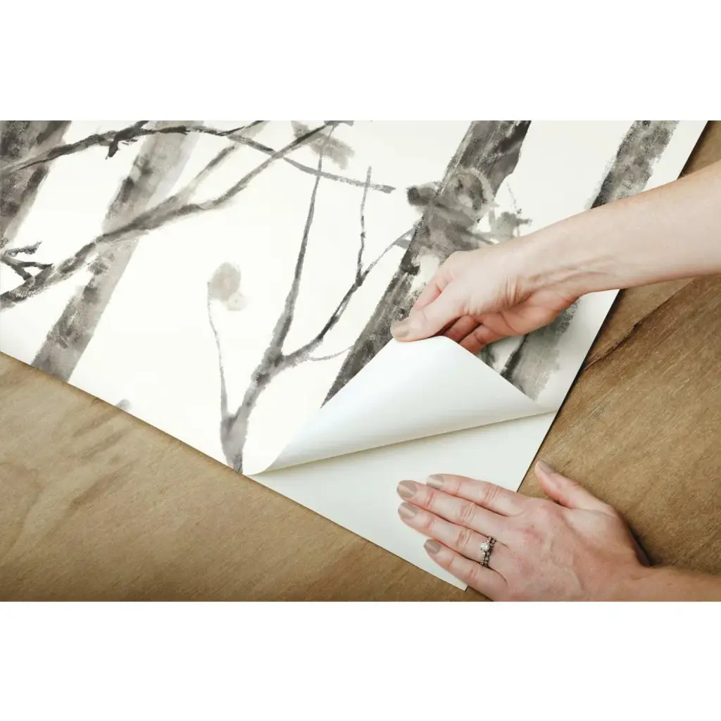 Captivate the look and feel of a nature-inspired forest in any room with White Trees Peel and Stick Wallpaper by RoomMates. Simple and affordable, give walls, decor and accessories a refreshing transformation with very little effort. Great for DIY projects, temporary home decorating and more, Peel and Stick Wallpaper transforms any space or decor in minutes. Simply peel from the backing and stick to any clean flat surface. When it''s time to redecorate, remove in full strips without damaging painted walls or leaving any sticky residue behind. Bring the glories of nature into your home with Peel and Stick Wallpaper from RoomMates. Includes 1 roll - 20.5 inches wide x 16.5 feet with a drop match and 24 inch repeat. Covers 28.18 square feet.