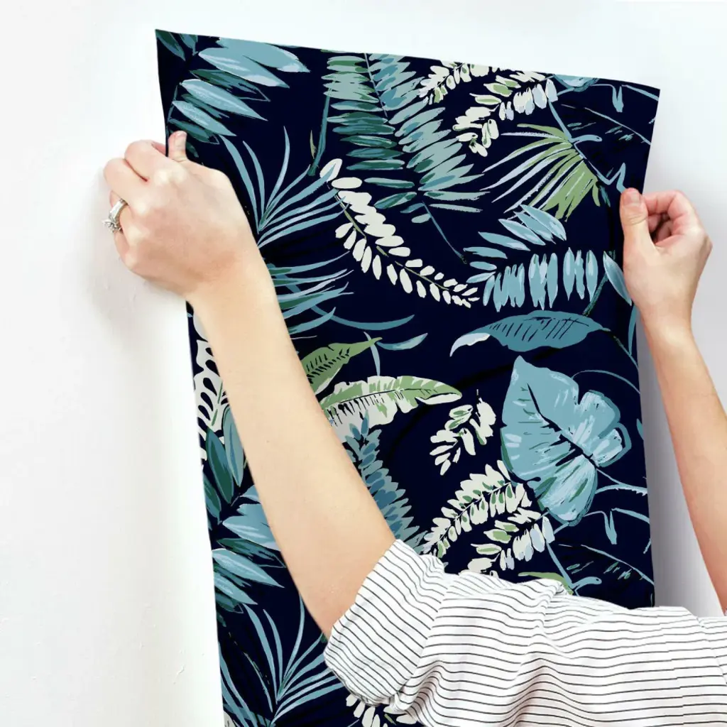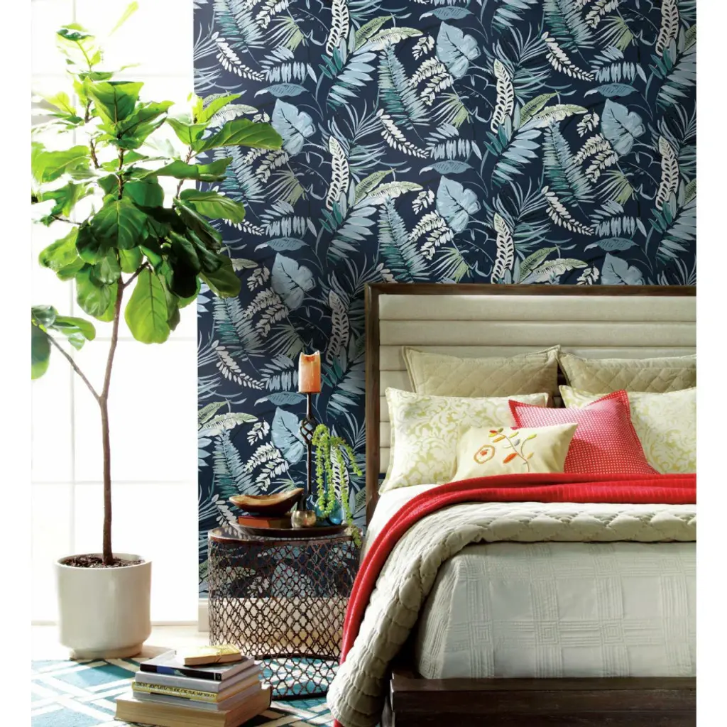 Tropical style is much more than untamed gardens of exotic beauty. It is the embodiment of modern affluent lifestyle and leisure. Manufactured on Sure Strip, a unique high performance substrate, this ultra-easy removable wallpaper is guaranteed easy to install and easy to remove; simply use water to activate. The colorful brushstrokes and palm fronds of pattern Tropical Toss bring a fresh new feeling to these whimsical jungle leaves. Includes 1 roll - 27 in x 27 ft = 60.75 sq ft with a straight match and 25.25 in repeat.