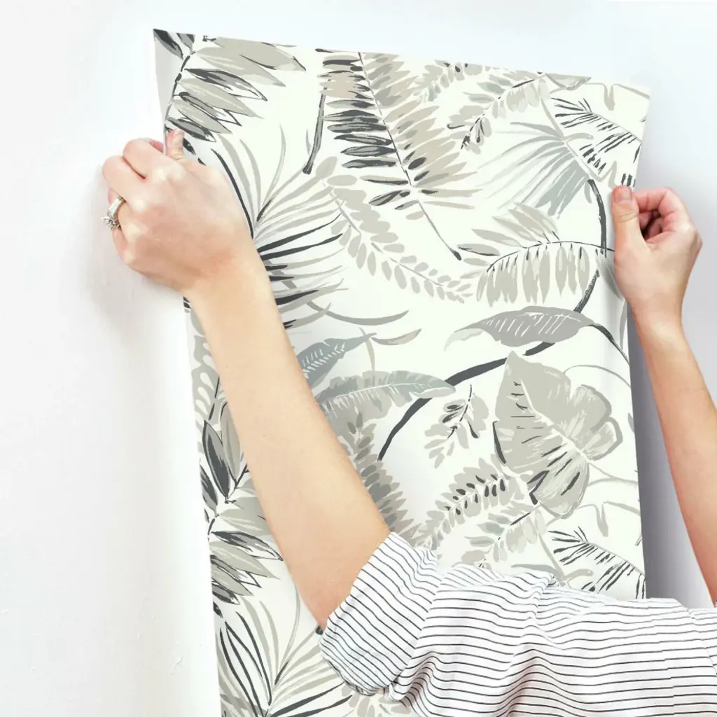 Tropical style is much more than untamed gardens of exotic beauty. It is the embodiment of modern affluent lifestyle and leisure. Manufactured on Sure Strip, a unique high performance substrate, this ultra-easy removable wallpaper is guaranteed easy to install and easy to remove; simply use water to activate. The colorful brushstrokes and palm fronds of pattern Tropical Toss bring a fresh new feeling to these whimsical jungle leaves. Includes 1 roll - 27 in x 27 ft = 60.75 sq ft with a straight match and 25.25 in repeat.