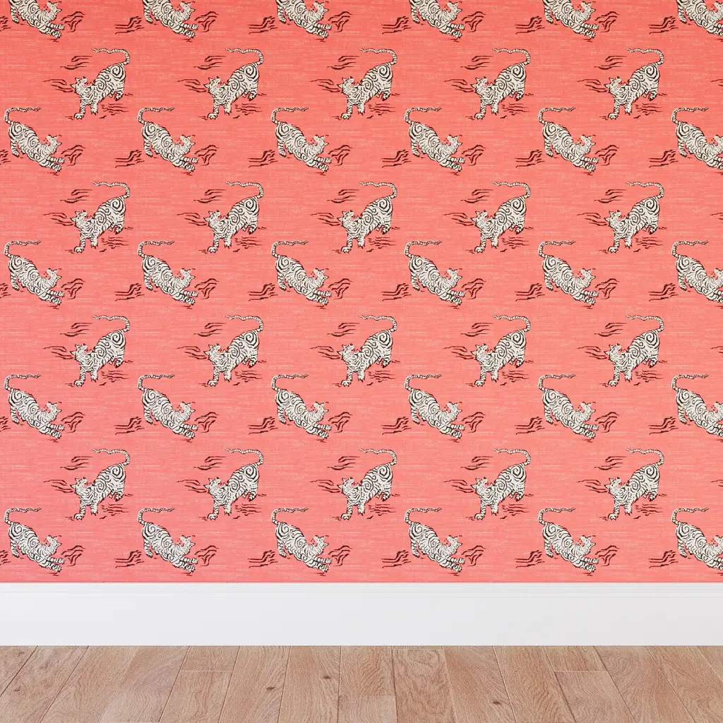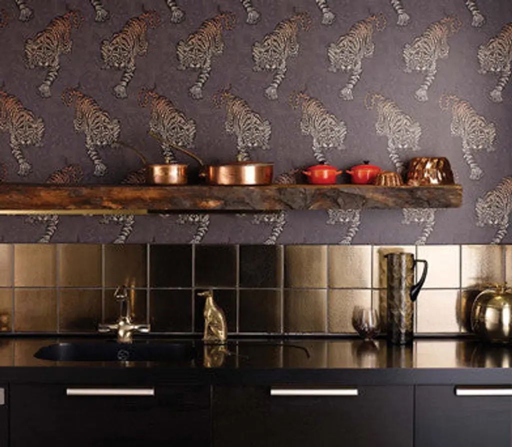 A magnificent stalking tiger is printed on holographic foil in jewel tones.Eden the debut collection of wallpapers created exclusively for Osborne & Little by renowned international fashion designer Matthew Williamson. Matthew brings from the world of fashion his unique and instinctive approach to colour with the use of cerise, jade, lemon, rose, amethyst, teal, metallics, cobalt and electric blue in designs which give a modern interpretation to ancient myths and legends. Material: Non-woven, washable Pattern Match: Straight Pattern Repeat: 21" Roll Dimensions: 20.5" wide x 33 feet long - approximately 55 square feet per roll. **Second image is a style shot in a different colorway**Hanging instructions are included with every roll of wallpaper. We recommend your paper hanger reads these instructions carefully before starting to hang.Please note: Burke Decor does not accept wallpaper returns at this time. Why? Wallpaper is produced in batches (similar to tile) and due to dye-lot variations that occur based on when the rolls are produced, we are unable to accept returns. Osborne & Little are one of the world's leading names in fabric and wallpaper design. Cherishing its reputation for innovation and quality, it has grown into one of the great British brands, globally renowned and respected. For nearly half a century its distinctive and appealing designs, across printed fabrics, weaves, and trimmings, have been at the heart of interior trends.