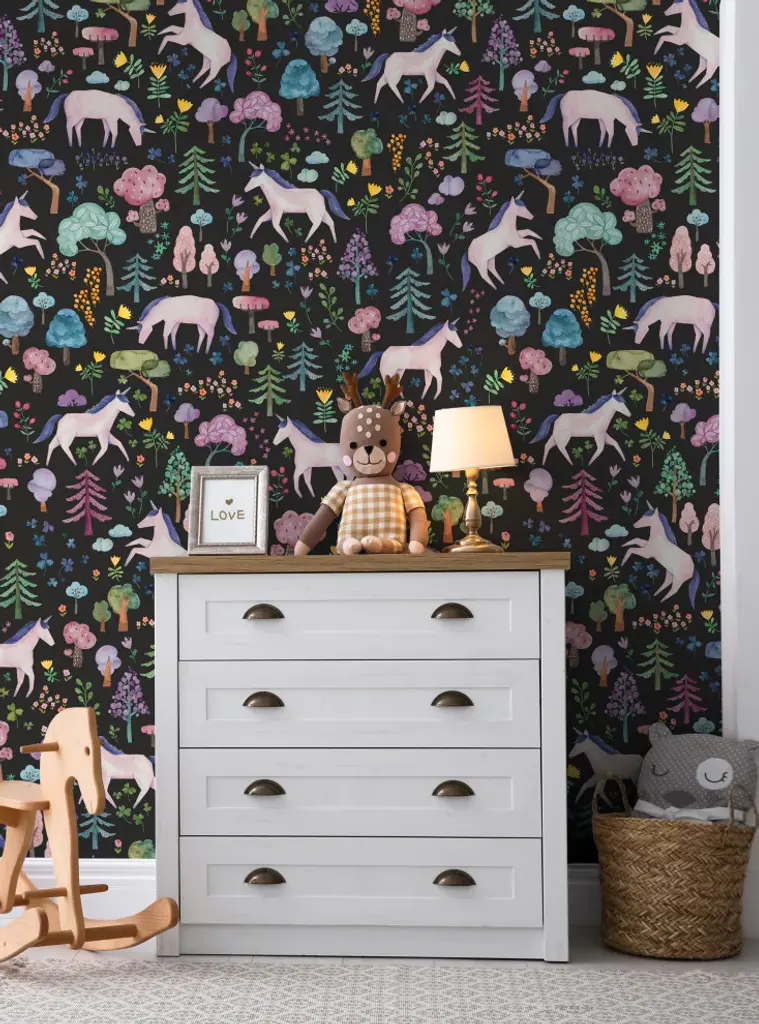 Bring your child''s fairytale to life and into your home with our Unicorn Forest Peel and Stick Vinyl Mural. Perfect for any child''s room, this enchanted design is sure create a world of wonder for your little one!The overall pattern repeats every 2 sheets. Each sheet is sold individually, so you would order the amount that you need to fill your wall space. For example, if you have a wall that is 8 feet wide, you would need to order 4 sheets . Size:24"w x 96"h24"w x 108"hPattern Repeat:48"w Every 2 sheetsWhat''s Included:1 sheet of peel-and-stick vinyl wallpaper