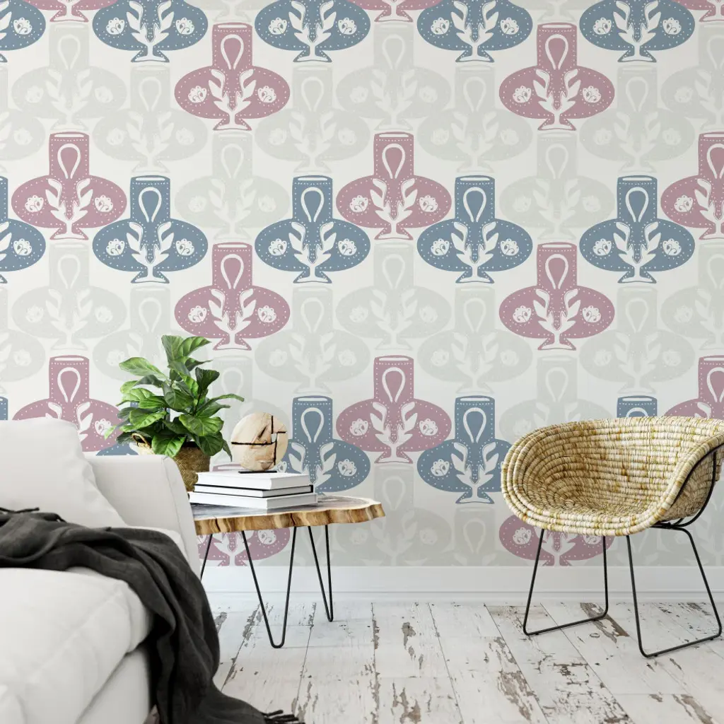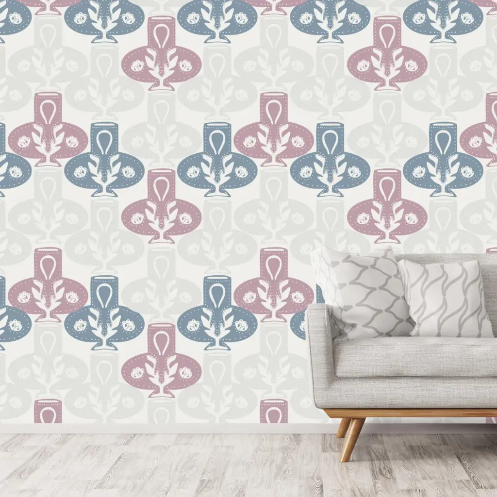 Vase Damask Pinky Blue Wallpaper By Monor Designs, 24"x144"