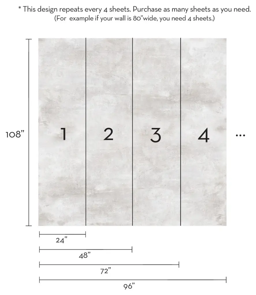Our versatile Venetian Plaster Faux Texture Vinyl Wall Mural is smooth, but adds the look of texture to any space "“ whether your style is traditional, minimalist, or industrial.This re-positionable wallpaper is designed and made in our studios in New Jersey. The designs are printed onto an adhesive-backed vinyl that can be removed, repositioned, and reused. The wallpaper does not leave residue on your walls and is ideal for DIY room makeovers without the mess and headaches of traditional wallpaper.[Size Options]24"w x 96"h24"w x 108"h[Pattern Repeat]every 96"[What''s Included]1 sheet of peel-n-stick vinyl wallpaper