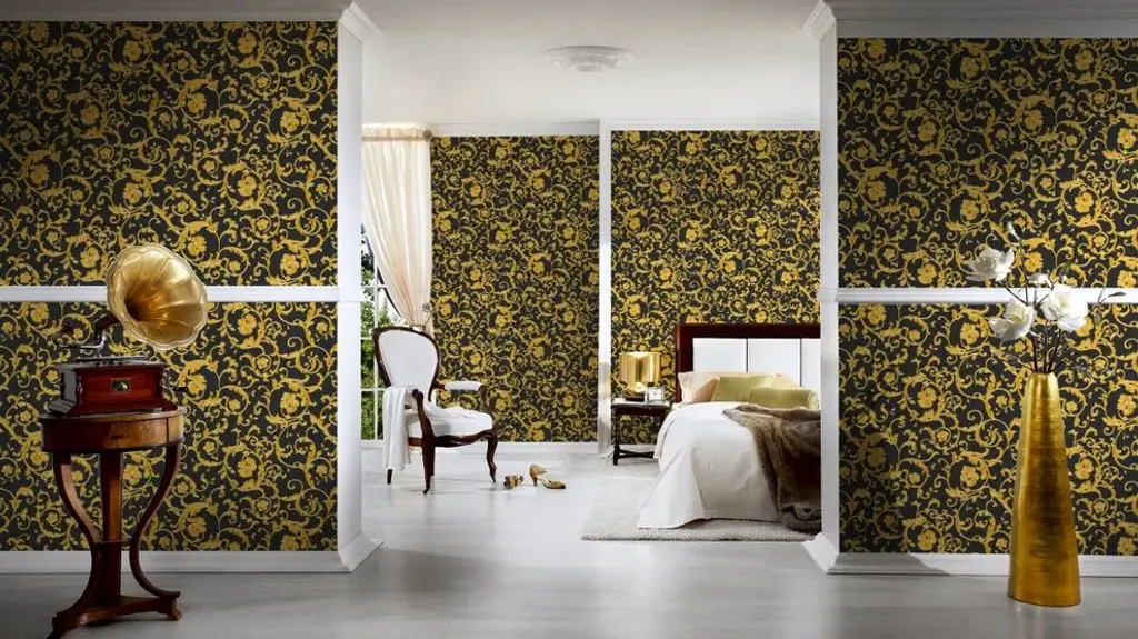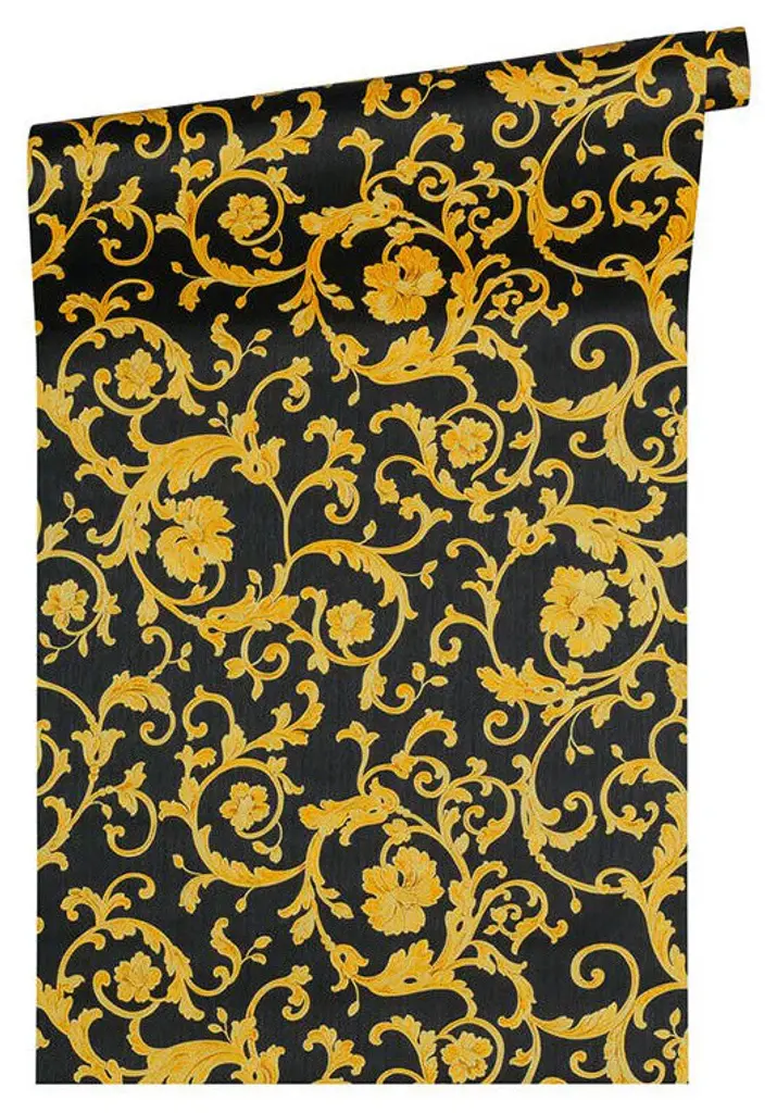 The exclusive «Versace» wallpapers promise sheer luxury. Copious amounts of gold, exclusive materials and sumptuous prints are characteristic for the «Versace» wallpaper collection. The emblematic classical décors «Greek Key» and «Barocco» are «Versace» hallmarks and were used for these luxury wallpapers. The whole collection revels in the opulent, neoclassical «Versace» style. Baroque elements, glittering floral trails and opulent arabesques, meandering yet clear straight lines or luxuriant carpets of flowers in luminous colors, black, gold and silver.«Versace» wallpapers radiate elegance and sensuality, typical for the brand.Made in ItalyRoll Covering 70 SQFT