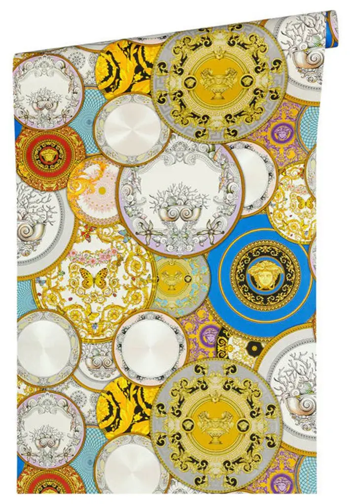 The exclusive «Versace» wallpapers promise sheer luxury. Copious amounts of gold, exclusive materials and sumptuous prints are characteristic for the «Versace» wallpaper collection. The emblematic classical décors «Greek Key» and «Barocco» are «Versace» hallmarks and were used for these luxury wallpapers. The whole collection revels in the opulent, neoclassical «Versace» style. Baroque elements, glittering floral trails and opulent arabesques, meandering yet clear straight lines or luxuriant carpets of flowers in luminous colors, black, gold and silver.«Versace» wallpapers radiate elegance and sensuality, typical for the brand.Made in ItalyRoll Covering 70 SQFT
