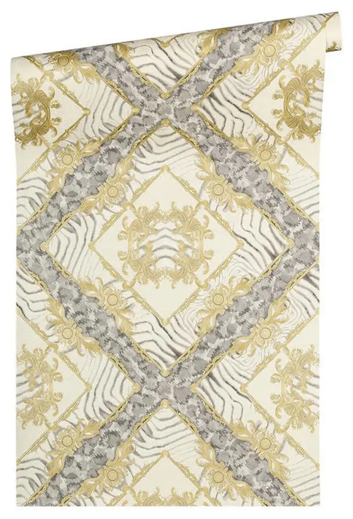 The exclusive Versace wallpapers promise sheer luxury. Copious amounts of gold, exclusive materials and sumptuous prints are characteristic for the Versace Wallpaper Collection. The emblematic classical decors Greek Key and Barocco are Versace hallmarks and were used for these luxury wallpapers. The whole collection revels in the opulent, neoclassical Versace style. Baroque elements, glittering floral trails and opulent arabesques, meandering yet clear straight lines or luxuriant carpets of flowers in luminous colors, black, gold and silver.Versace wallpapers radiate elegance and sensuality, typical for the brand.Made in ItalyRoll Covering 70 SQFT