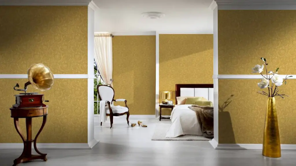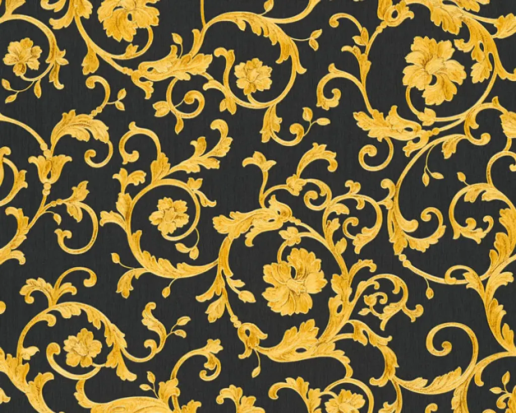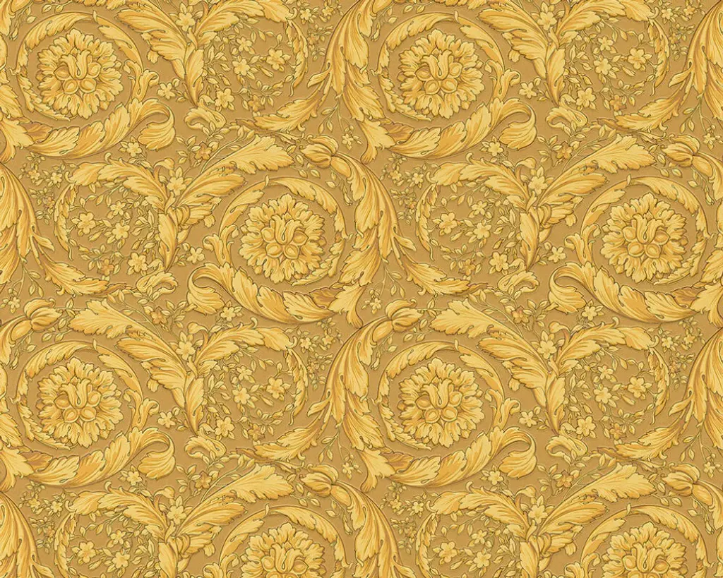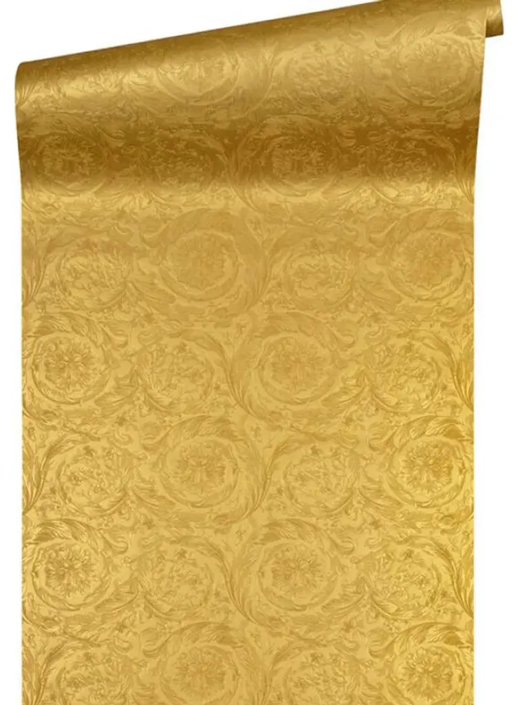 Versace Home Wallpaper 366923, Roll 0,70x10,05 m, Straight match 32/0 cm, Non-woven / non-woven wallpaper. Color: Gold, Metallic, Yellow. Decor: Baroque, Classical, Flower. Room: living room, bedroom. Quality: good light fastness, Scrubbable, Strippable means.Made in Europe Roll covering 58 SQFT