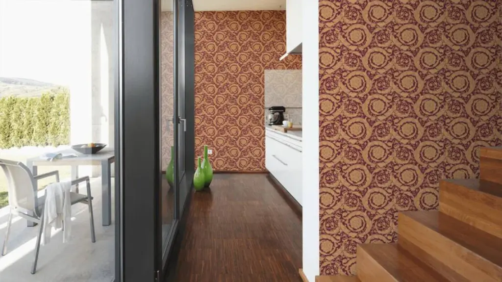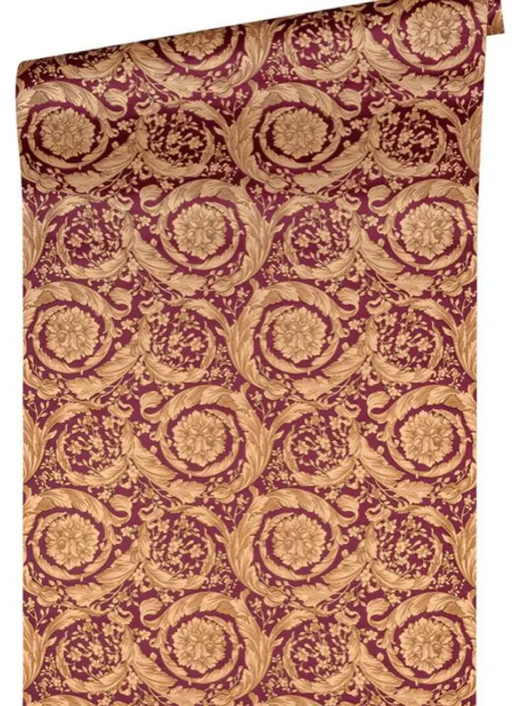Versace Home Wallpaper 366927, Roll 0,70x10,05 m, Straight match 32/0 cm, Non-woven / non-woven wallpaper. Color: Beige, Brown, Metallic, Red. Decor: Baroque, Classical, Floral, Flower, Ornament. Room: bathroom, corridor, living room, bedroom. Quality: good light fastness, Scrubbable, Strippable means.Made in GermanyRoll Covering 58 SQFT