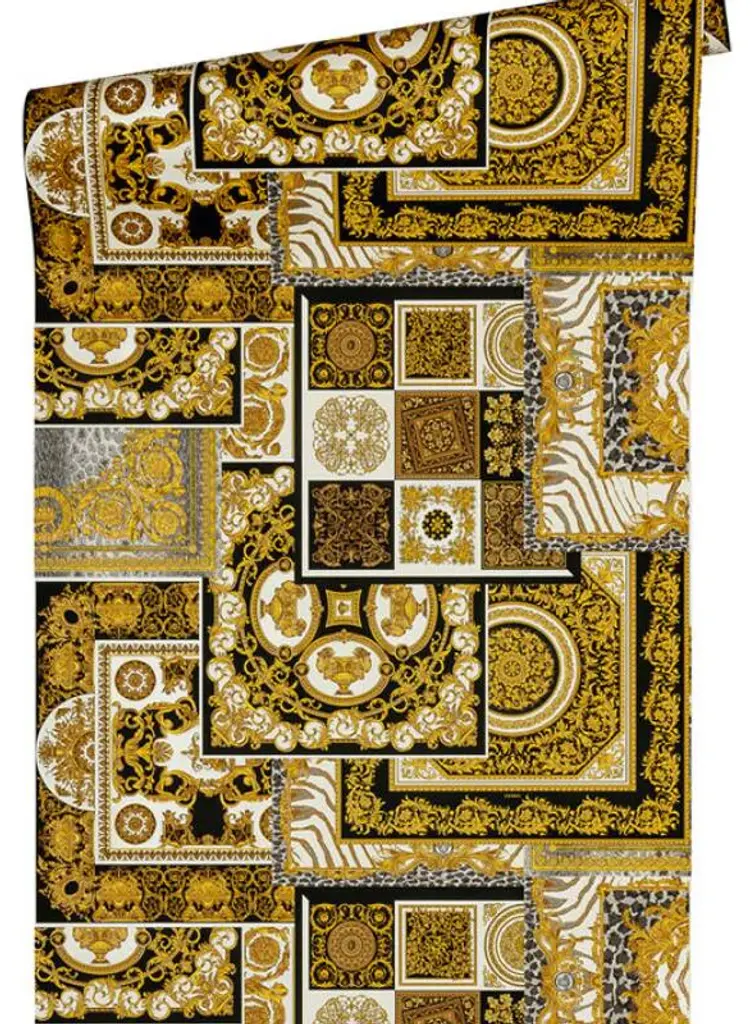 Versace Home Wallpaper 370483, Roll 0,70x10,05 m, Offset match 64/32 cm, Non-woven / non-woven wallpaper. Color: Black, Brown, Copper, Gold, Metallic, White. Decor: Baroque, Classical, Deco / Motive, Image, Ornament. Room: corridor, kitchen, living room, bedroom. Quality: good light fastness, Scrubbable, Strippable means.Made in GermanyRoll Covering 58 SQFT
