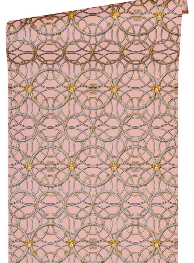 Versace Home Wallpaper 370496, Roll 0,70x10,05 m, Straight match 64/0 cm, Non-woven / non-woven wallpaper. Color: Gold, Grey, Metallic, Pink, Silver. Decor: Baroque, Classical, Modern. Room: corridor, living room, bedroom. Quality: good light fastness, Scrubbable, Strippable means.Made in Europe Roll covering 58 SQFT