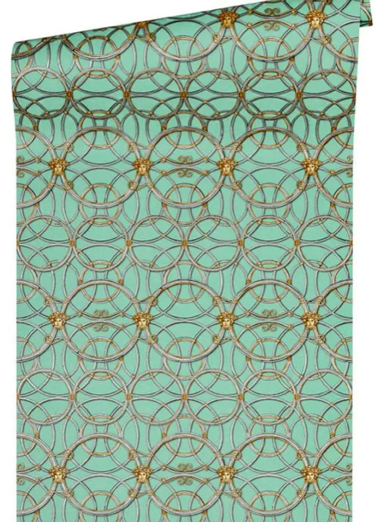 Versace Home Wallpaper 370497, Roll 0,70x10,05 m, Straight match 64/0 cm, Non-woven / non-woven wallpaper. Color: Gold, Green, Metallic, Silver. Decor: Baroque, Classical, Modern. Room: corridor, living room, bedroom. Quality: good light fastness, Scrubbable, Strippable means.Made in Europe Roll covering 58 SQFT
