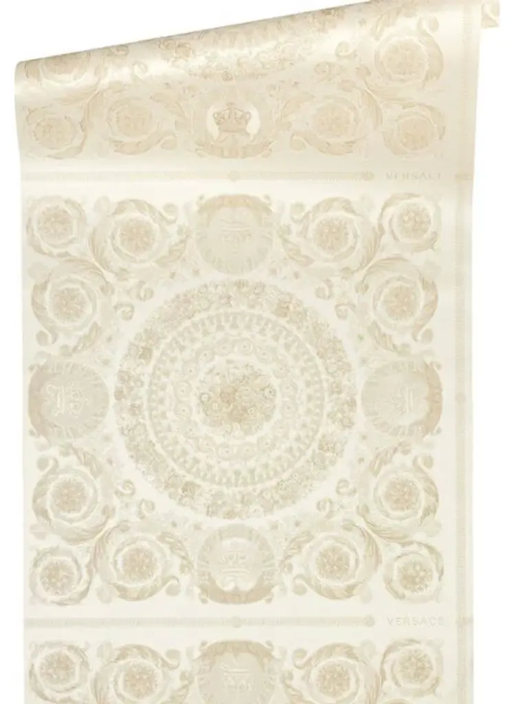 Versace Home Wallpaper 370551, Roll 0,70x10,05 m, Straight match 70/0 cm, Non-woven / non-woven wallpaper. Color: Beige, Cream, Metallic, White. Decor: Baroque, Classical, Graphics, Modern, Ornament. Room: corridor, living room, bedroom. Quality: good light fastness, Scrubbable, Strippable means.Made in Europe Roll covering 58 SQFT
