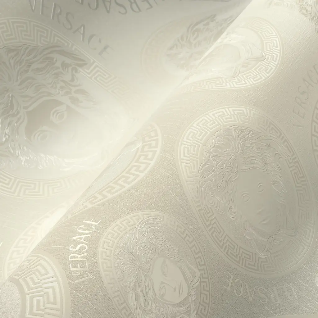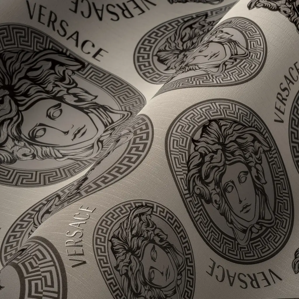 Transform your space into a regal palace with the Versace Volume 5 Monarch Wallpaper from Seabrook Designs. The wide width textured vinyl design adds a touch of luxury, while the iconic Medusa logo adds a sense of Italian opulence. Elevate your walls with this iconic and sophisticated wallpaper, fit for royals. Highlights