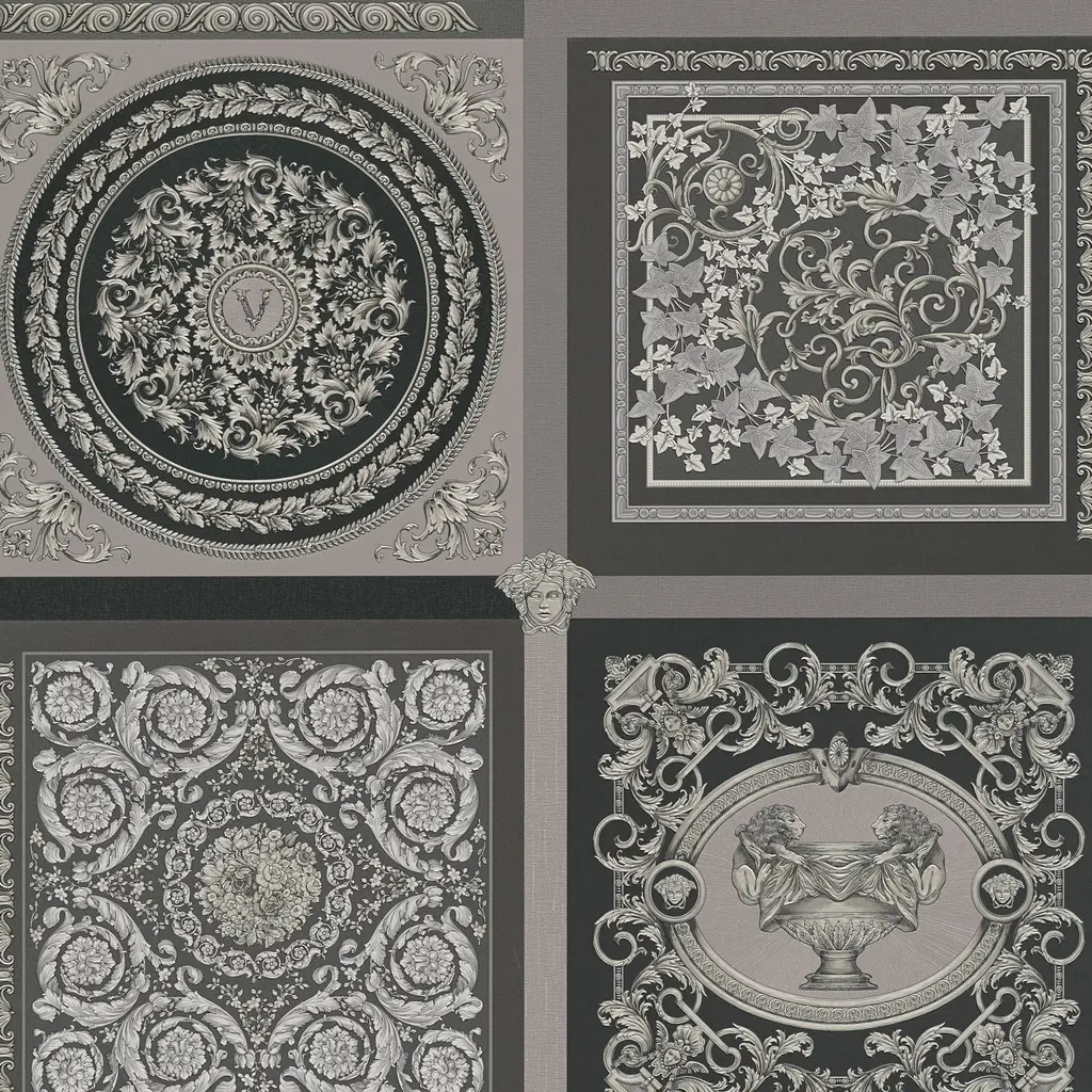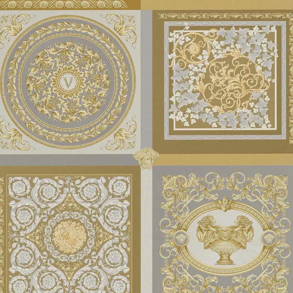 Surround yourself in the epitome of luxury with the Versace Volume 5 Reverie Wallpaper from Seabrook Designs. This wide-width vinyl wallcovering exudes opulence, with mosaic tiles showcasing iconic Versace motifs. Adorn your space with a vivacious and elegant design, perfect for those who appreciate the finer things in life. Highlights
