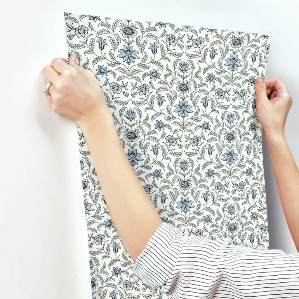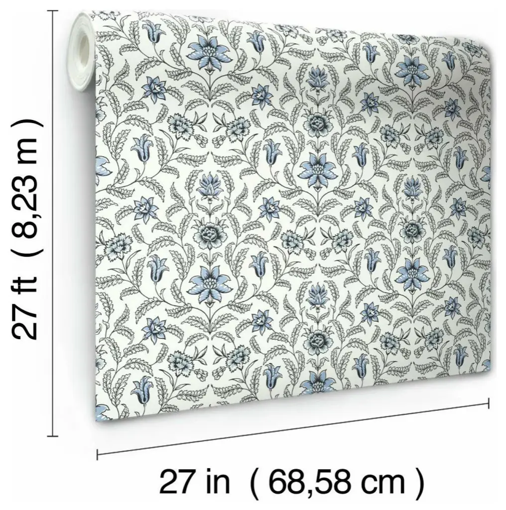 Timeless motifs combine with sophisticated color to create the playful, casual pattern mix of heritage and modern found in Grandmillennial. Manufactured on Sure Strip�, a unique high performance substrate, this ultra-easy removable wallpaper is guaranteed easy to install and easy to remove; simply use water to activate. Pattern Vintage Blooms� watercolor blossoms on leafy stems are inspired by archival documents from 1880. Includes 1 roll - 27 in x 27 ft = 60.75 sq ft with a straight match and 25.25 in repeat.