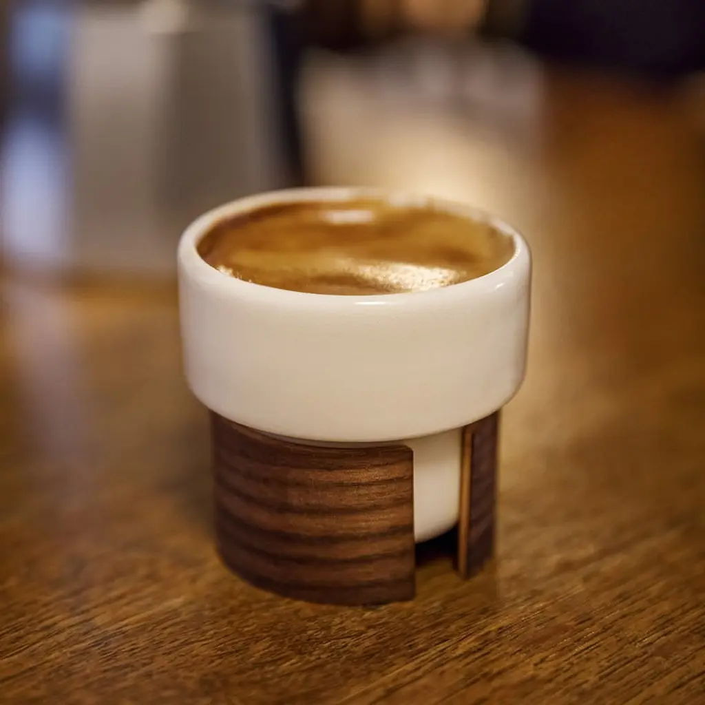 Tonfisk Design’s Warm espresso cups enchant with a smooth combination of porcelain and wood. The stackable cups are dishwasher safe, and the removable wooden sleeve can be wiped with a damp cloth and oiled from time to time. The 2.71 fl oz (0,8 dl) cups are sold in a set of two. The Warm collection, designed by Brian Keaney from the Finnish ceramics brand Tonfisk Design, pairs porcelain with wood in a simple but stunning way. The Warm products are equipped with an oak or walnut sleeve, which protects hands from heat, insulates the hot beverage and gives the collection its characteristic, warm soul. The Warm tableware has become a modern classic of Finnish design, listed by the Wallpaper magazine in 2006 as one of the best designs of the decade.