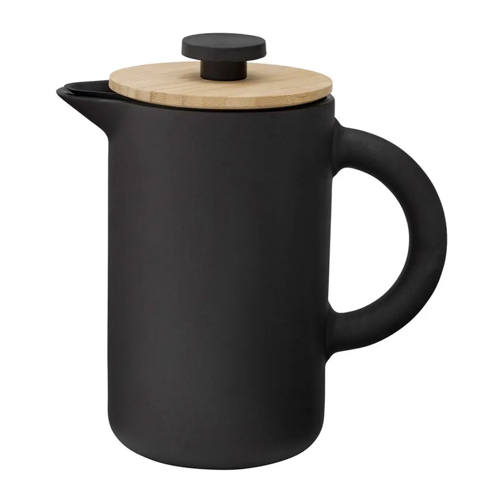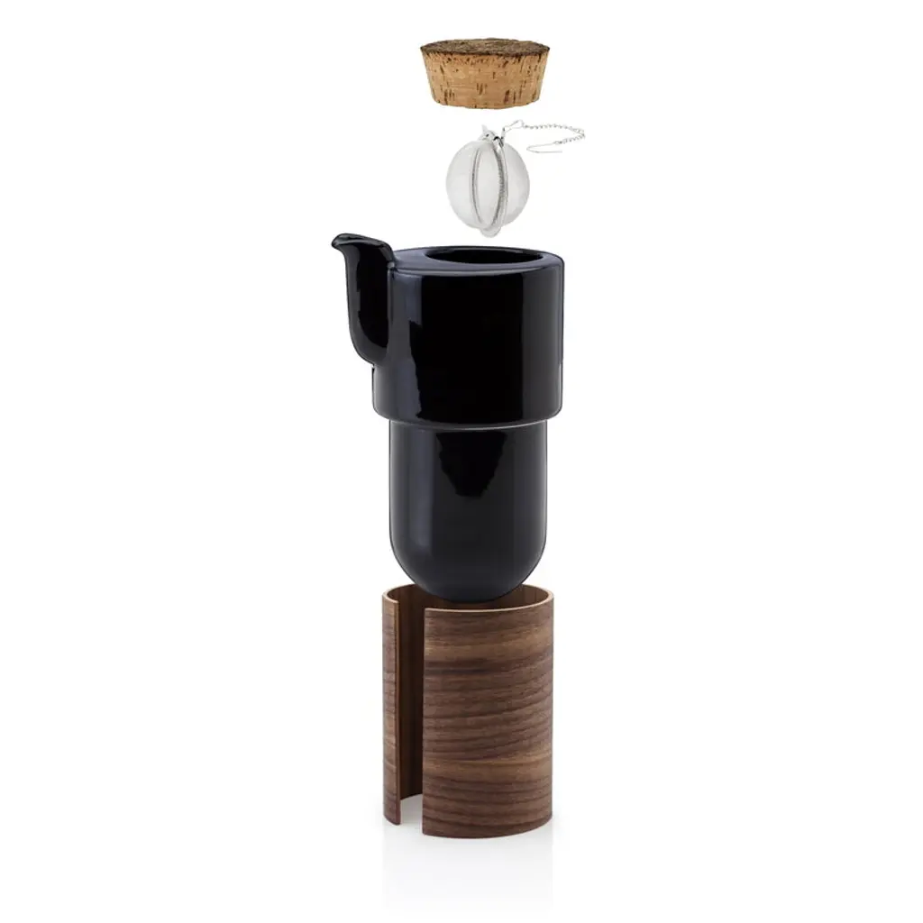 The 20.29 fl oz (6 dl) teapot from Tonfisk Design's Warm collection enchants with a smooth combination of porcelain and walnut. The black porcelain teapot comes with a cork lid, wooden sleeve and metal strainer. The porcelain pot is dishwasher safe, and the removable wooden sleeve can be wiped with a damp cloth and oiled from time to time. The Warm collection, designed by Brian Keaney from the Finnish ceramics brand Tonfisk Design, pairs porcelain with wood in a simple but stunning way. The Warm products are equipped with an oak or walnut sleeve, which protects hands from heat, insulates the hot beverage and gives the collection its characteristic, warm soul. The Warm tableware has become a modern classic of Finnish design, listed by the Wallpaper magazine in 2006 as one of the best designs of the decade