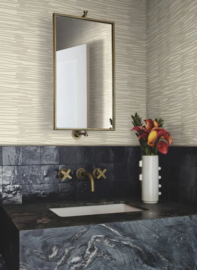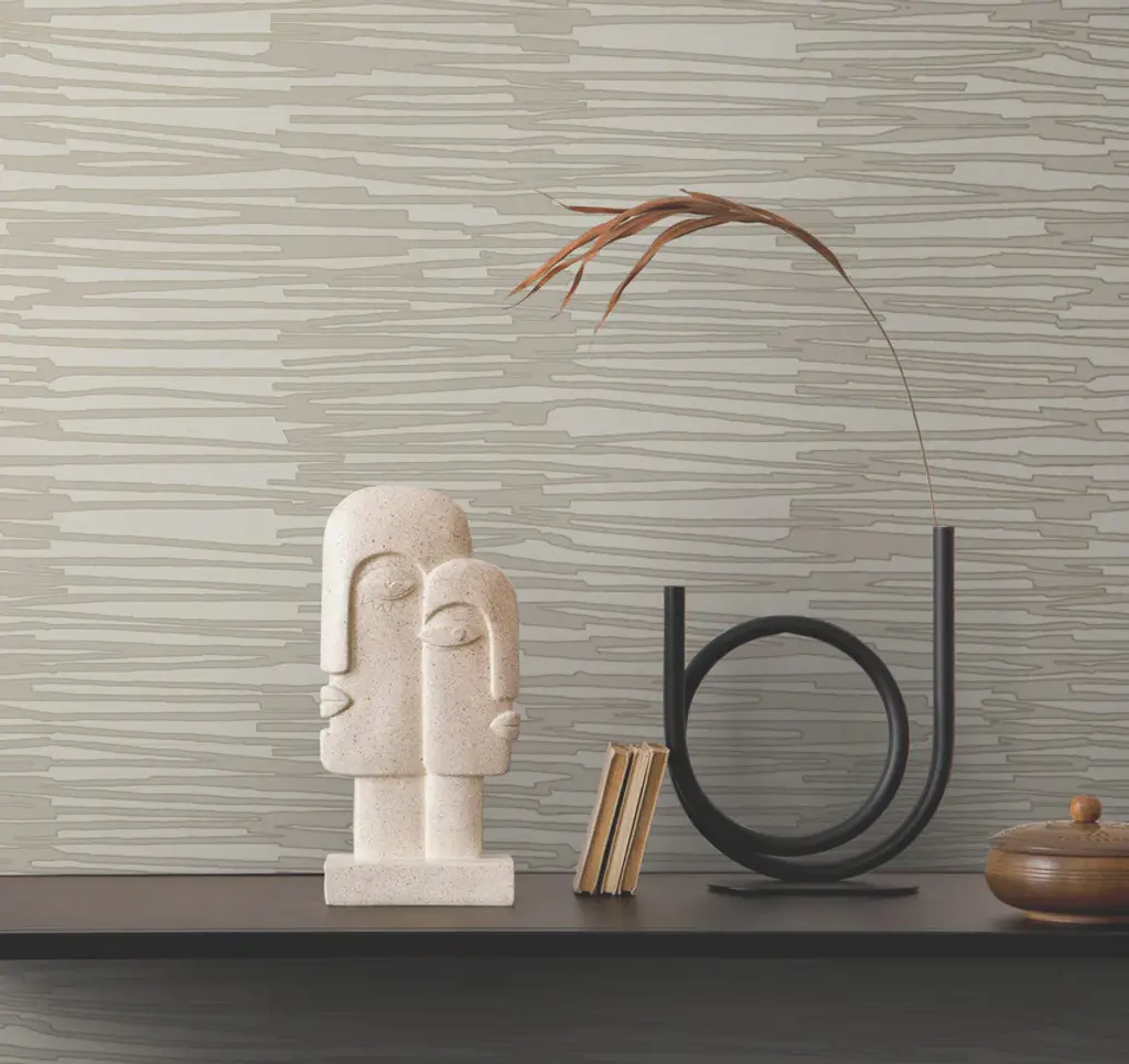 Add dynamic interest to your interiors with Water Reed Thatch''s dynamic interplay between interlaced and jagged beige and cream stripes and contrasting metallic outlining. This Water Reed Thatch Wallpaper measures approximately 27 inches wide by 27 feet long, measuring approximately 60.8 square feet per roll. Artistic experimentation with the interplay of form, color and texture has led to an avant-garde reimagining of familiar design motifs. Unpasted non woven material; 25.25-in repeat, straight match; Washable and strippable; 27-in by 27-ft long roll; Covers about 60.8 square feet