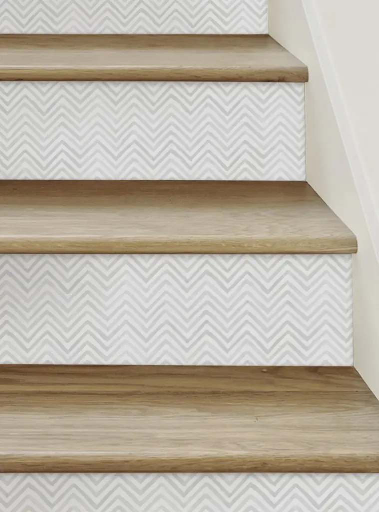 Watercolor Chevron Peel And Stick Stair Riser Strips, Grey, 48"w X 7"h, 6 Pack