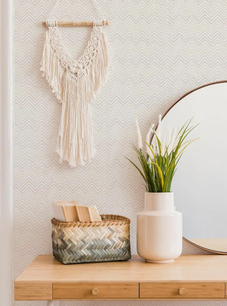 Watercolor Chevron Peel And Stick Vinyl Wallpaper, Barely Beige, 24"w X 60"h