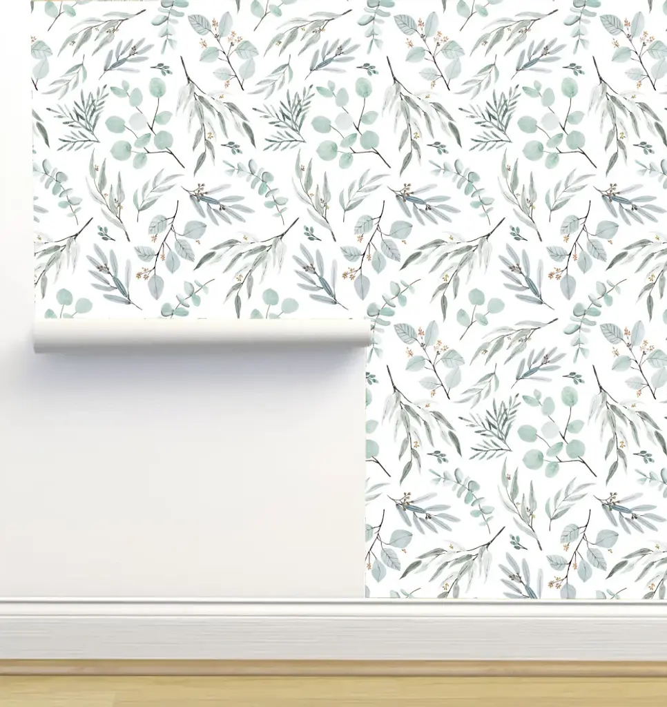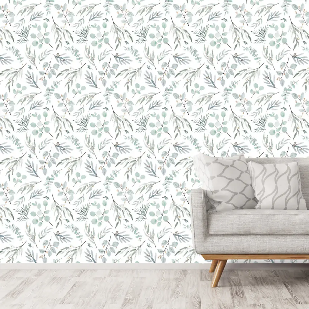 Watercolor Eucalyptus Leaves Wallpaper By Erin Kendal, 24"x144"