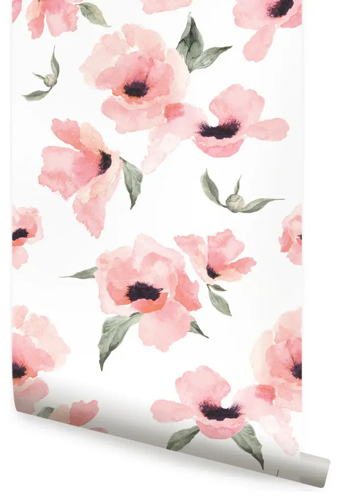 Our modern watercolor floral print features an original hand-painted design. Use it to add elegance to an accent wall behind a makeup vanity, or to brighten up the inside of a closet.This re-positionable wallpaper is designed and made in our studios in New Jersey. The designs are printed onto an adhesive-backed vinyl that can be removed, repositioned, and reused. The wallpaper does not leave residue on your walls and is ideal for DIY room makeovers without the mess and headaches of traditional wallpaper.Size:24"w x 60"h24"w x 108"hPattern Repeat Length:every 48" What''s Included:1 sheet of peel-n-stick vinyl wallpaper