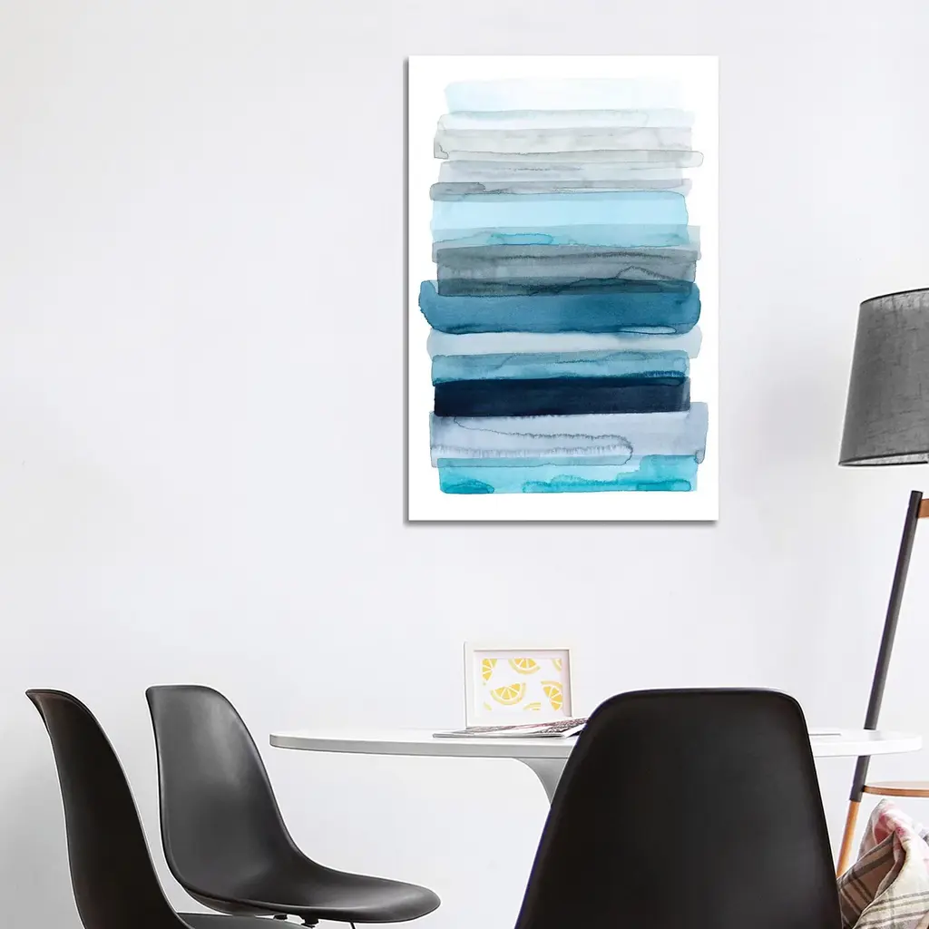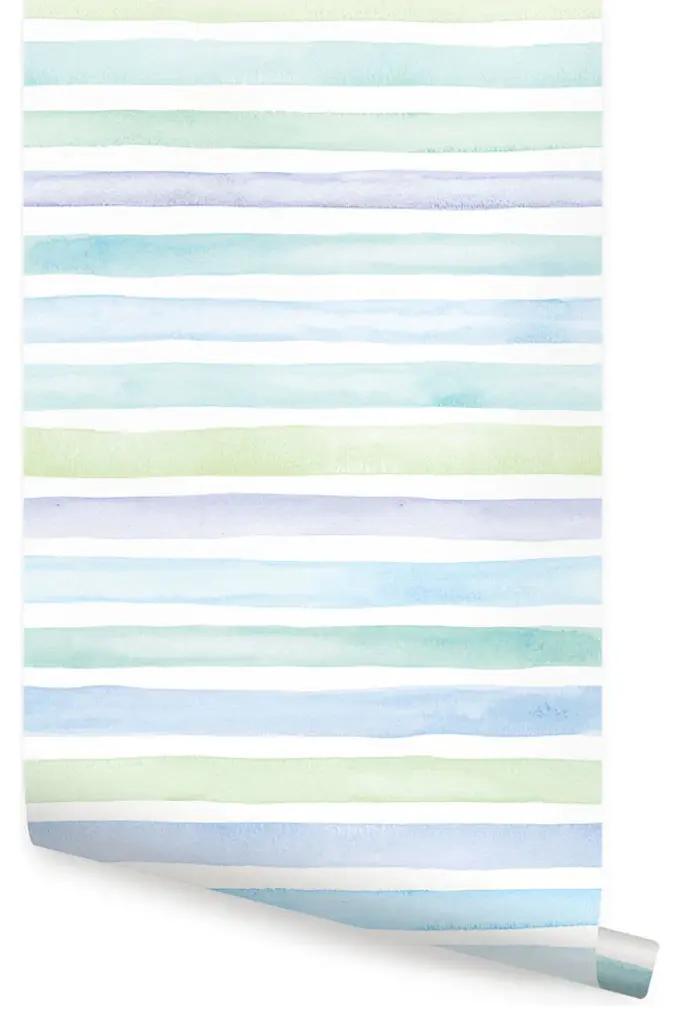 Watercolor Stripes Peel And Stick Vinyl Wallpaper, Ocean Blue, 24"w X 108"h