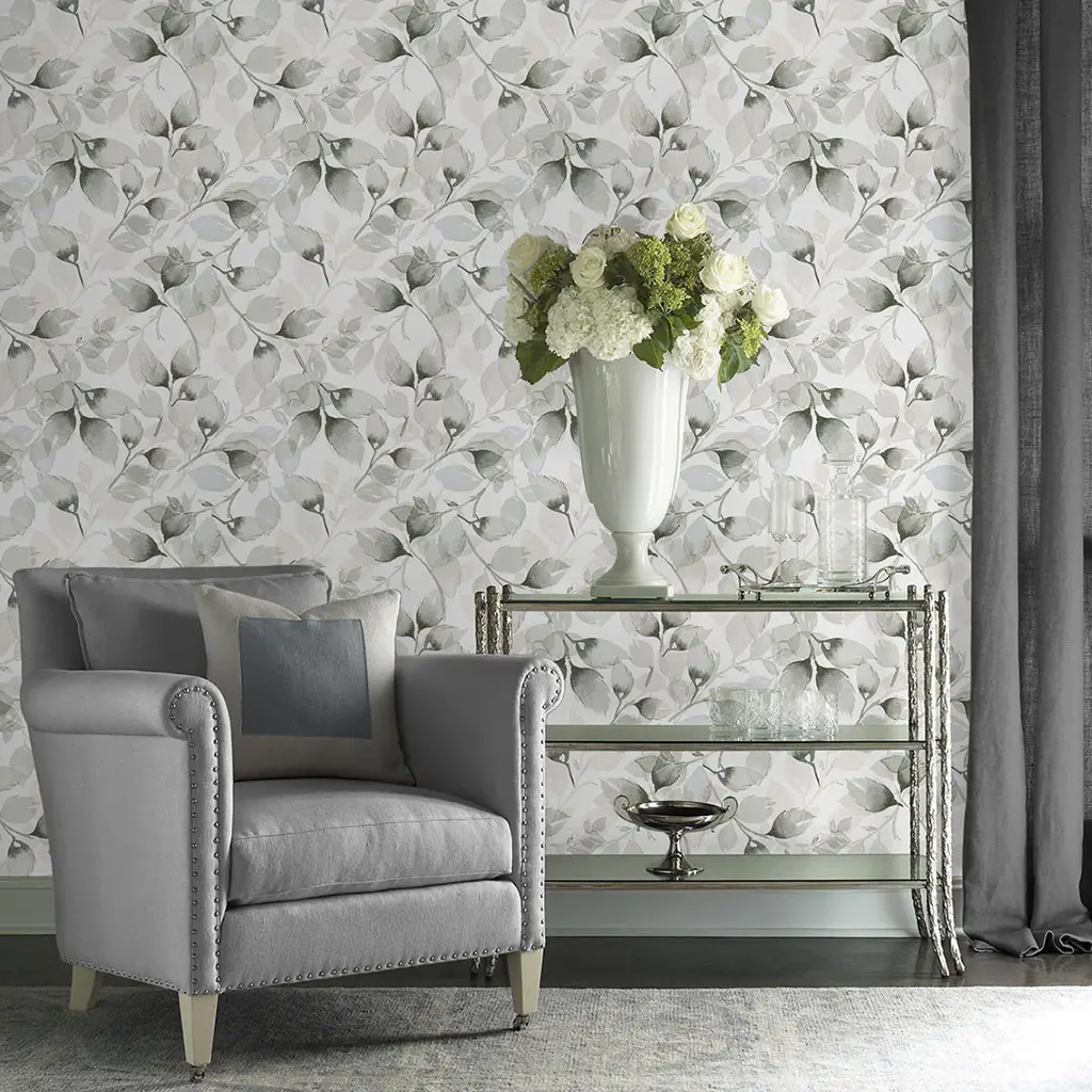 Watercolor Tossed Leaves Peel-And-Stick Luxe Haven Wallpaper
